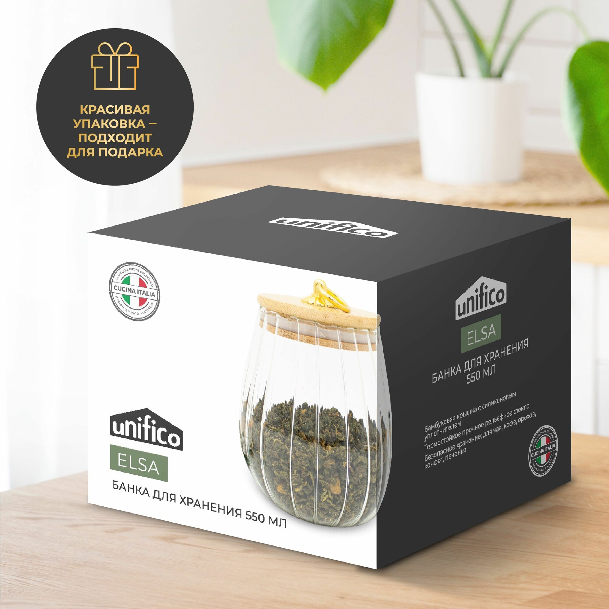 Банка стеклянная для сыпучих продуктов 550 мл. с бамбуковой крышкой UNIFICO Elsa (овальная) интересное: