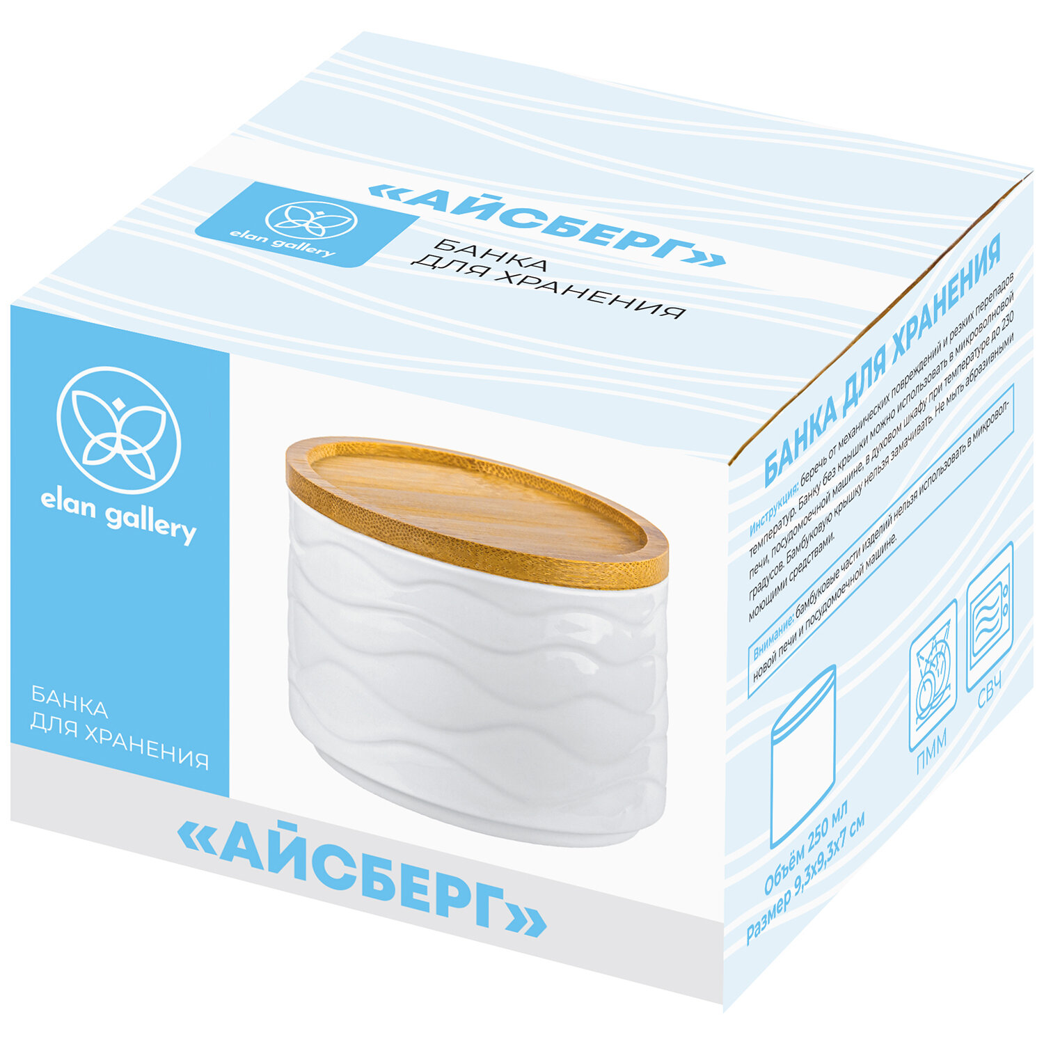 Купить Банка для хранения сыпучих продуктов и запекания 250 мл Elan Gallery "Айсберг волны" + дер. крышка