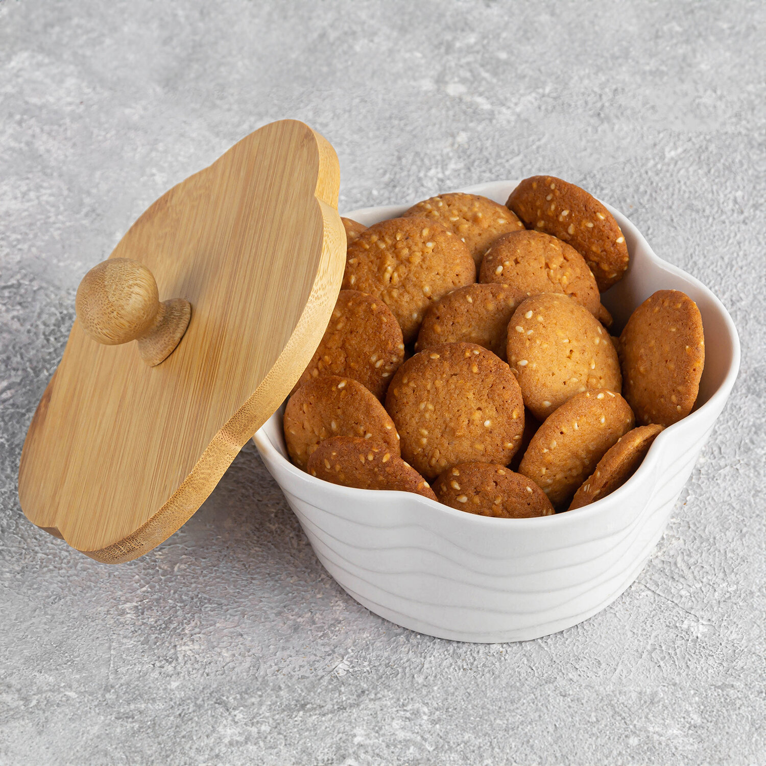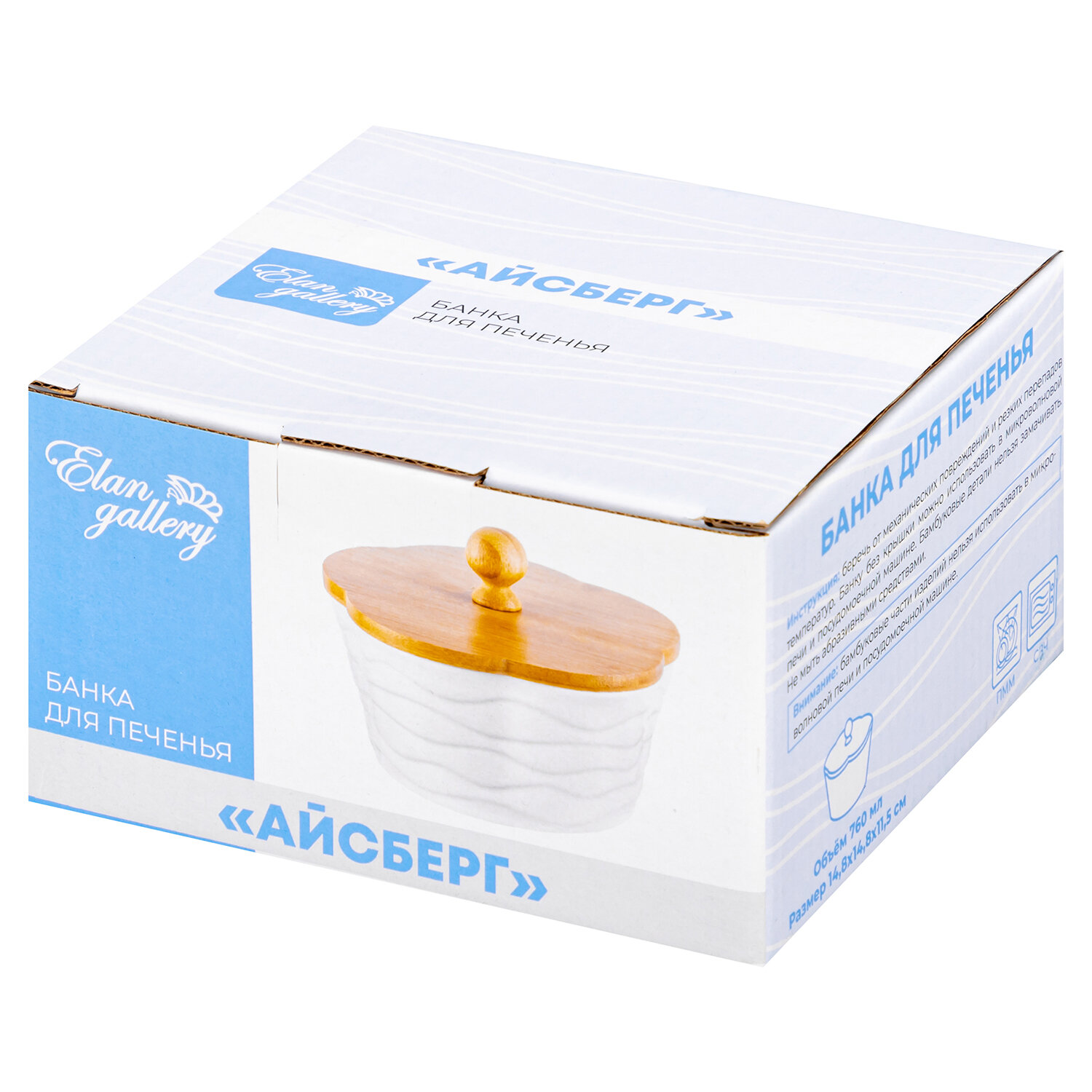 Банка для печенья, для хранения сыпучих продуктов, для чая, кофе 760 мл Elan Gallery Айсберг волны с деревянной крышкой интересное: