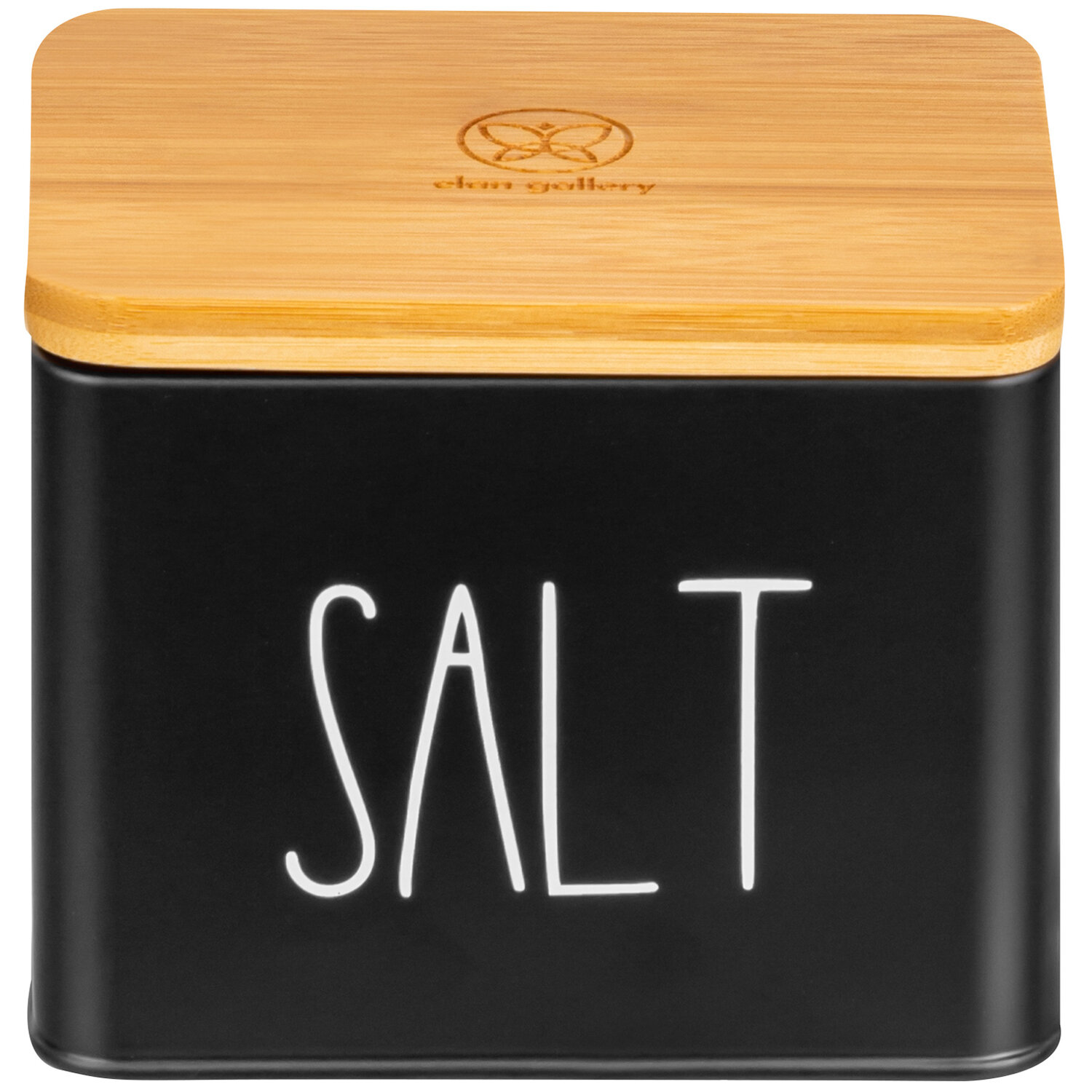 Купить Банка для хранения сыпучих продуктов соли/ кофе / чая / сахара 1,5 л Elan Gallery "Соль", черная с деревянной крышкой