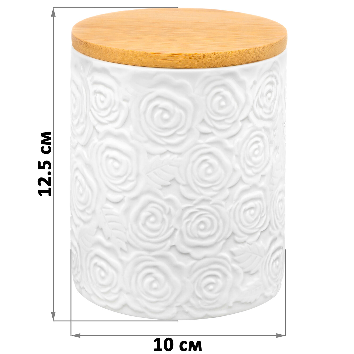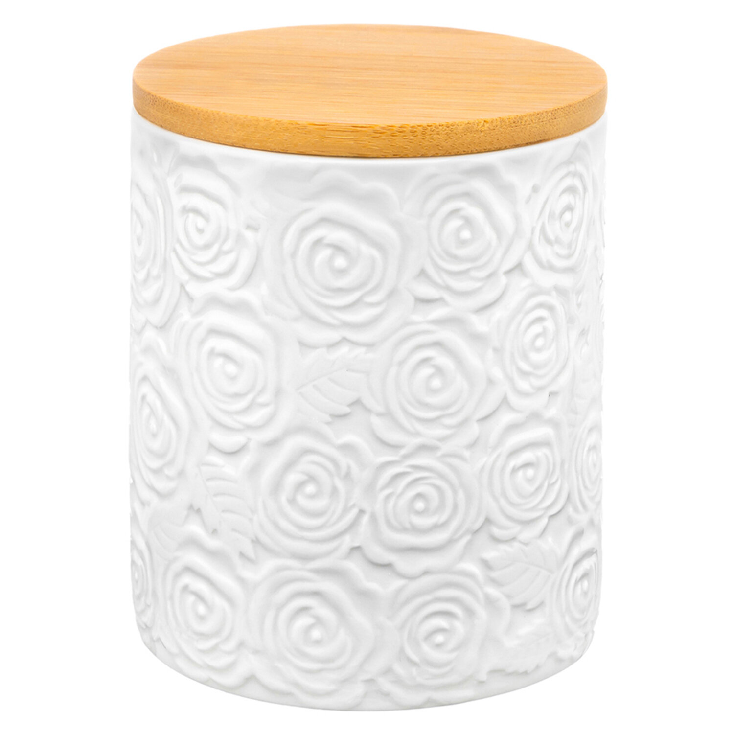Купить Банка для хранения сыпучих продуктов, чая, кофе 650мл Elan Gallery Розы, с дер. крышкой с силиконовым уплотнителем