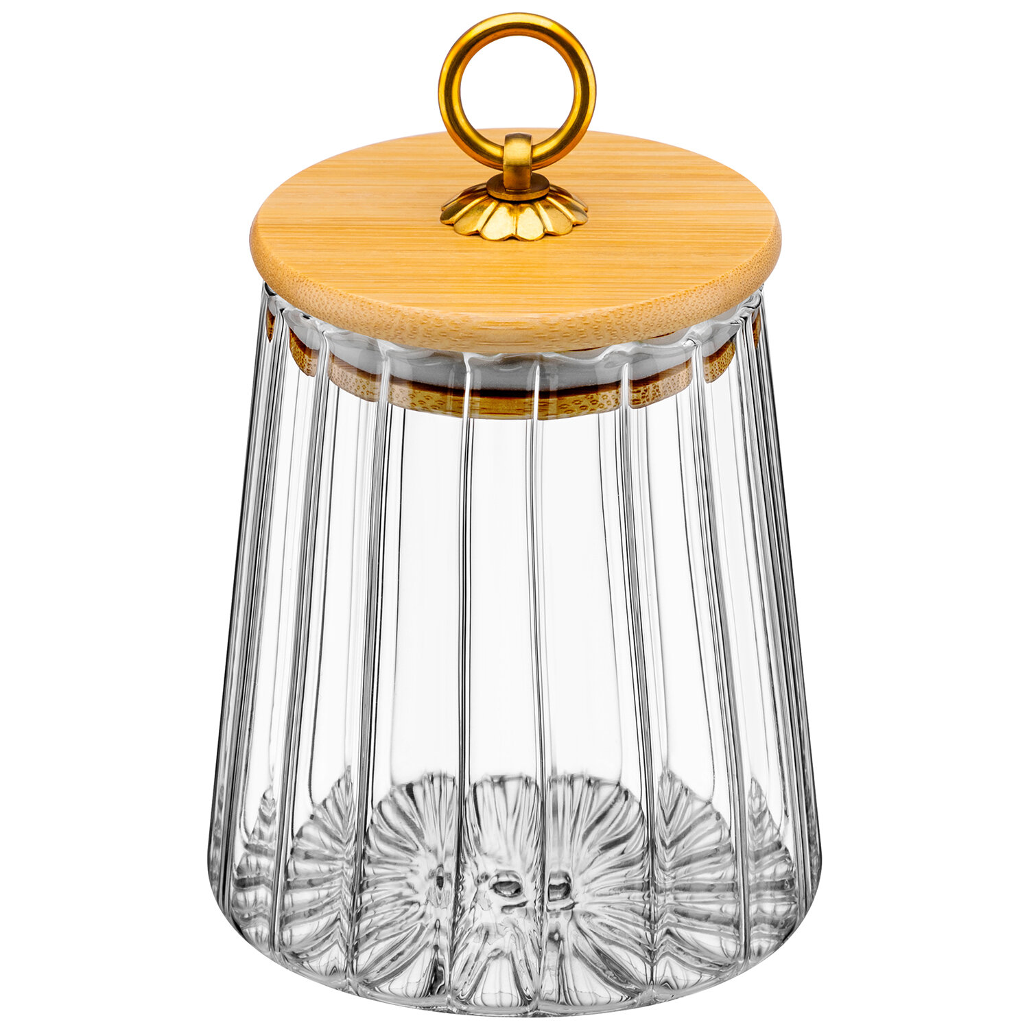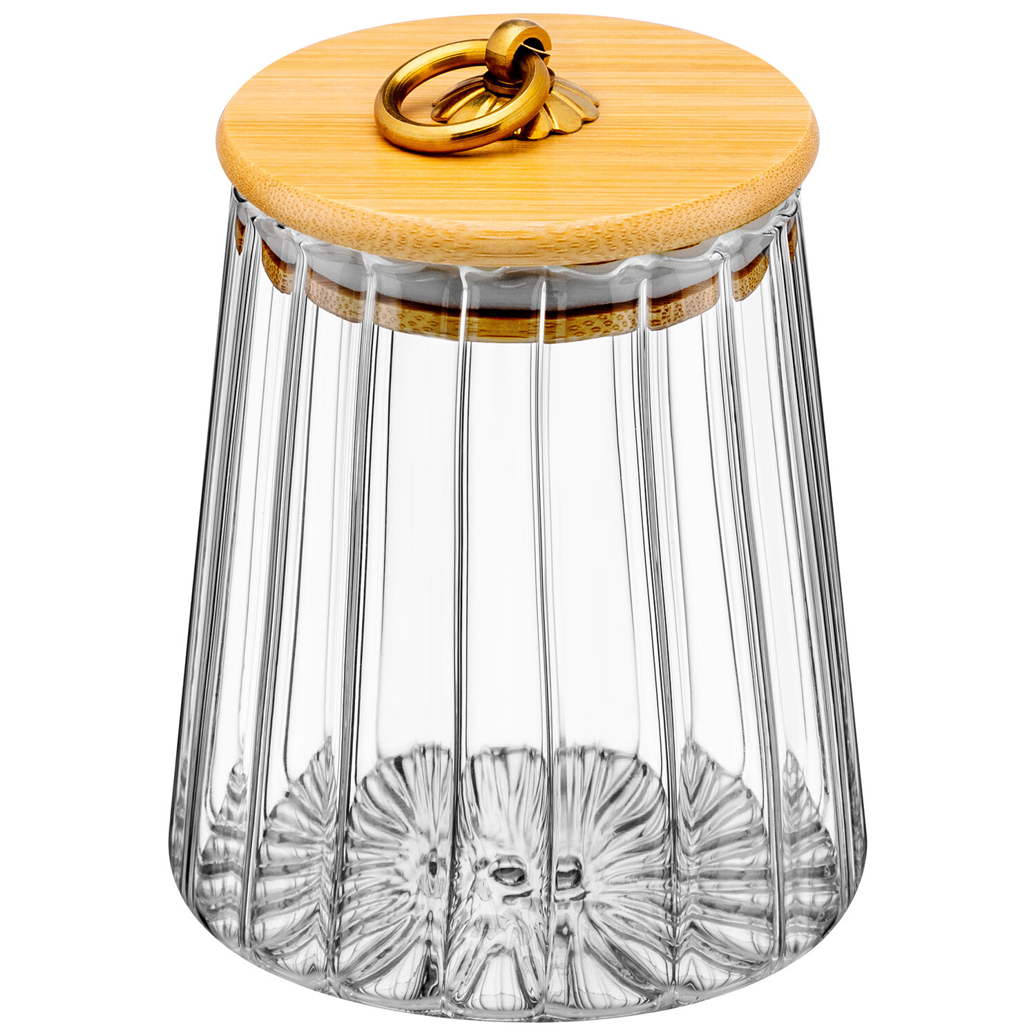 Купить Банка стеклянная 650 мл 10х10х13 см Elan Gallery с деревянной крышкой с силиконовым уплотнителем