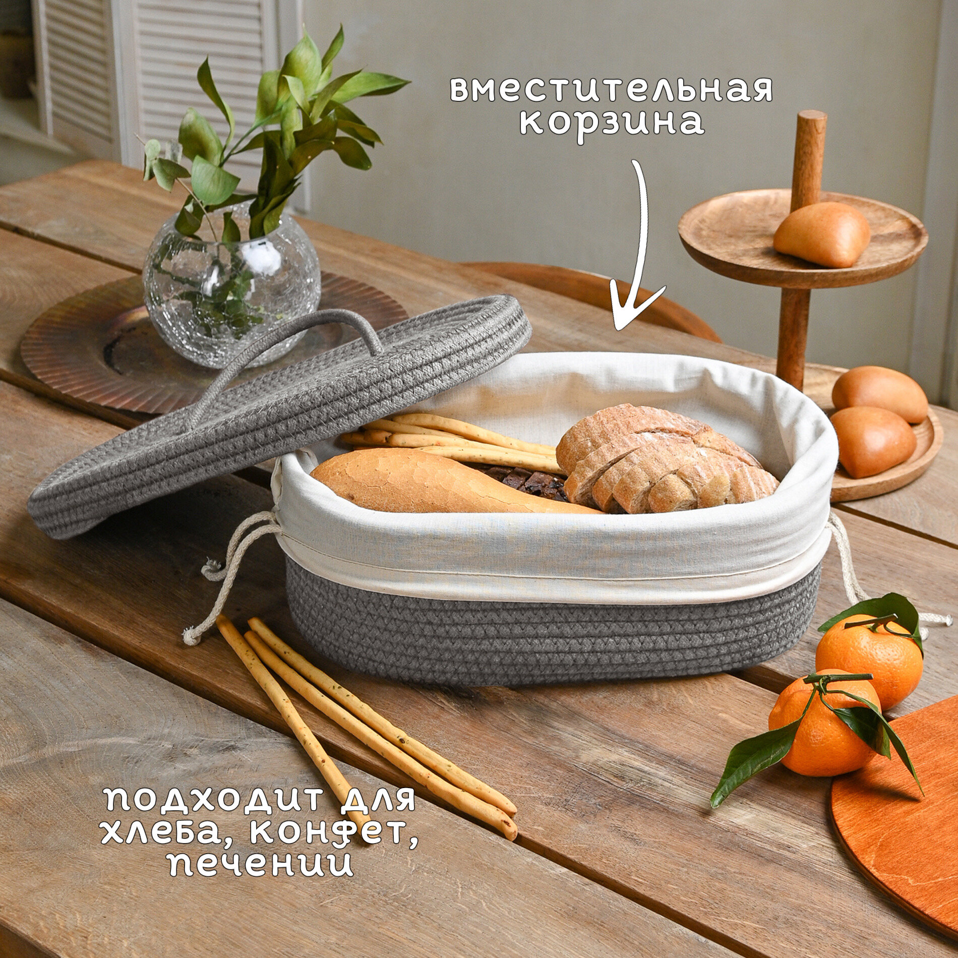 Хлебница плетеная с крышкой для хранения (серая) интересное:
