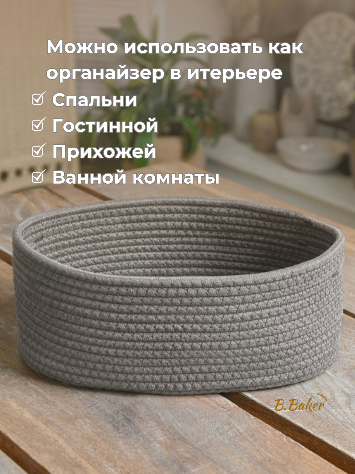 Хлебница плетеная с крышкой на стол B.Baker бежевая