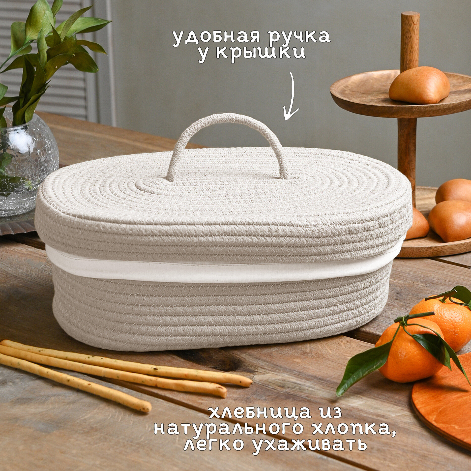 Хлебница плетеная с крышкой для хранения белая интересное: