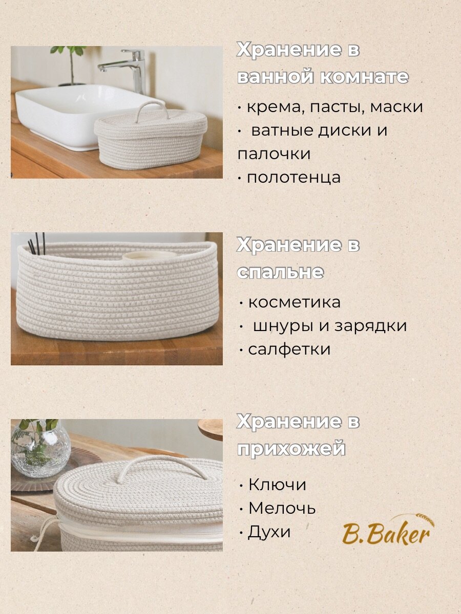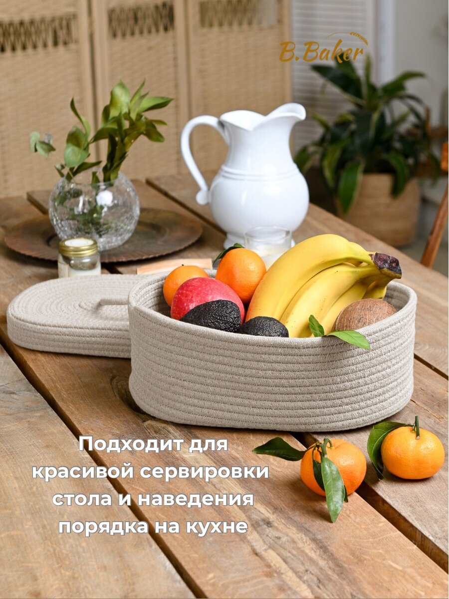 Хлебница плетеная с крышкой на стол B.Baker бежевая