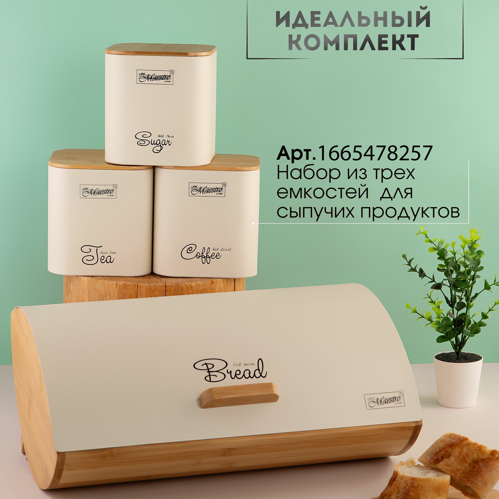 Набор Хлебница с емкостями для хранения Kamille KM 1118 бамбук, нержавеющая сталь (1118 / черный)