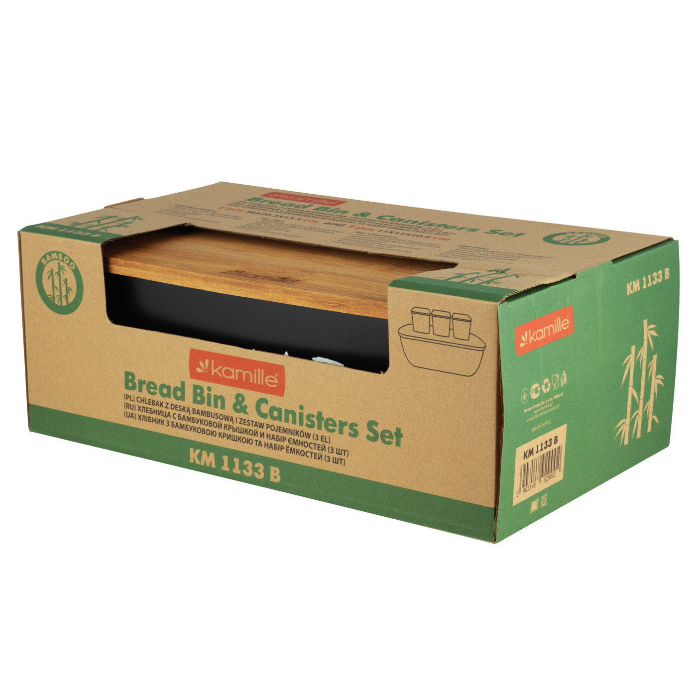 Набор Хлебница с емкостями для хранения Kamille KM 1118 бамбук, нержавеющая сталь (1118 / черный)