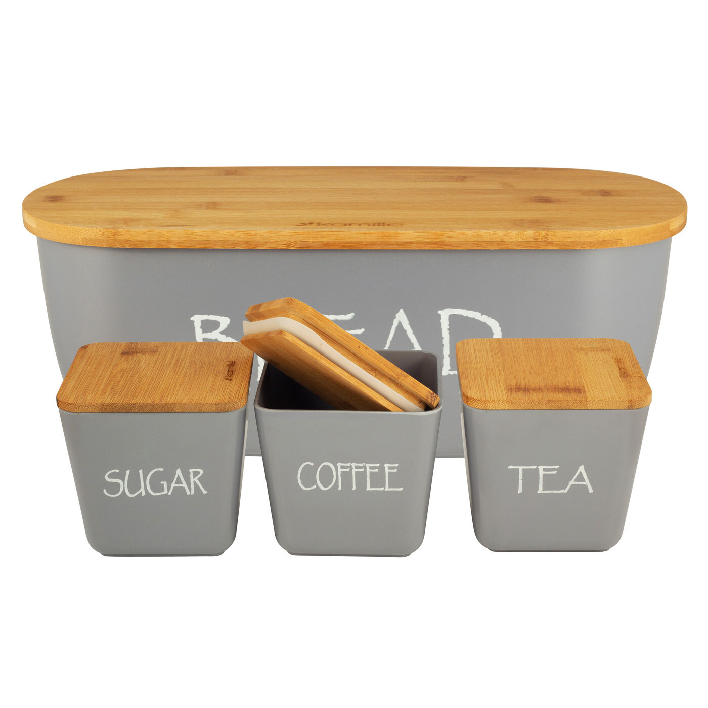 Набор Хлебница с емкостями для хранения Kamille KM 1118 бамбук, нержавеющая сталь (1118 / черный)