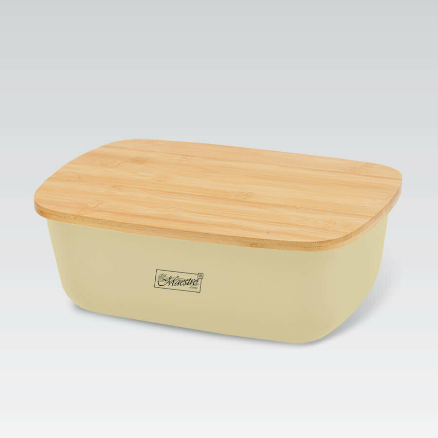 Купить Хлебница Maestro MR-1776-IVORY крышка бамбук можно использовать как доску 34,5 x 23,5 x 13см
