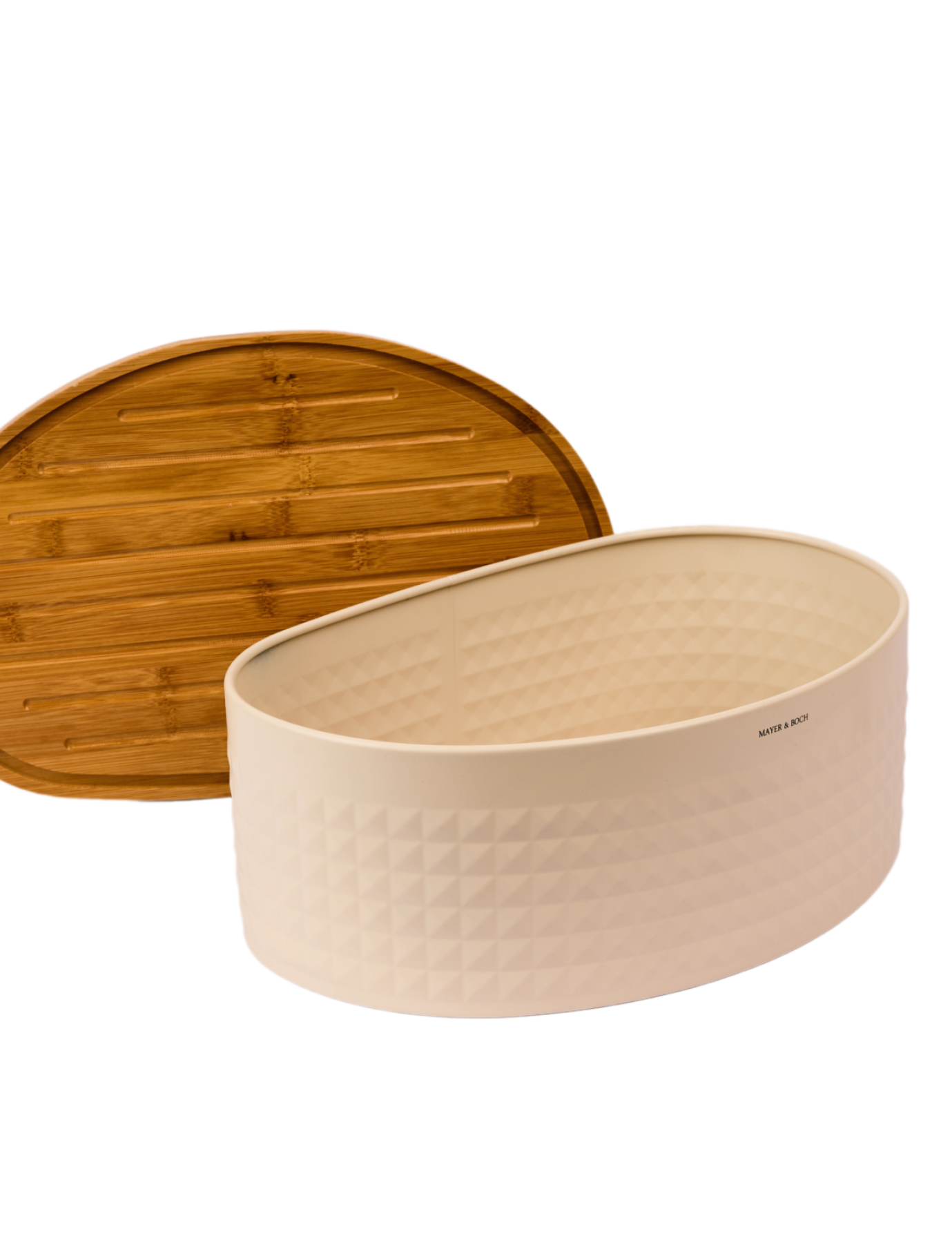 Купить Хлебница MAYER&BOCH с крышкой из металла и бамбука, большая белая
