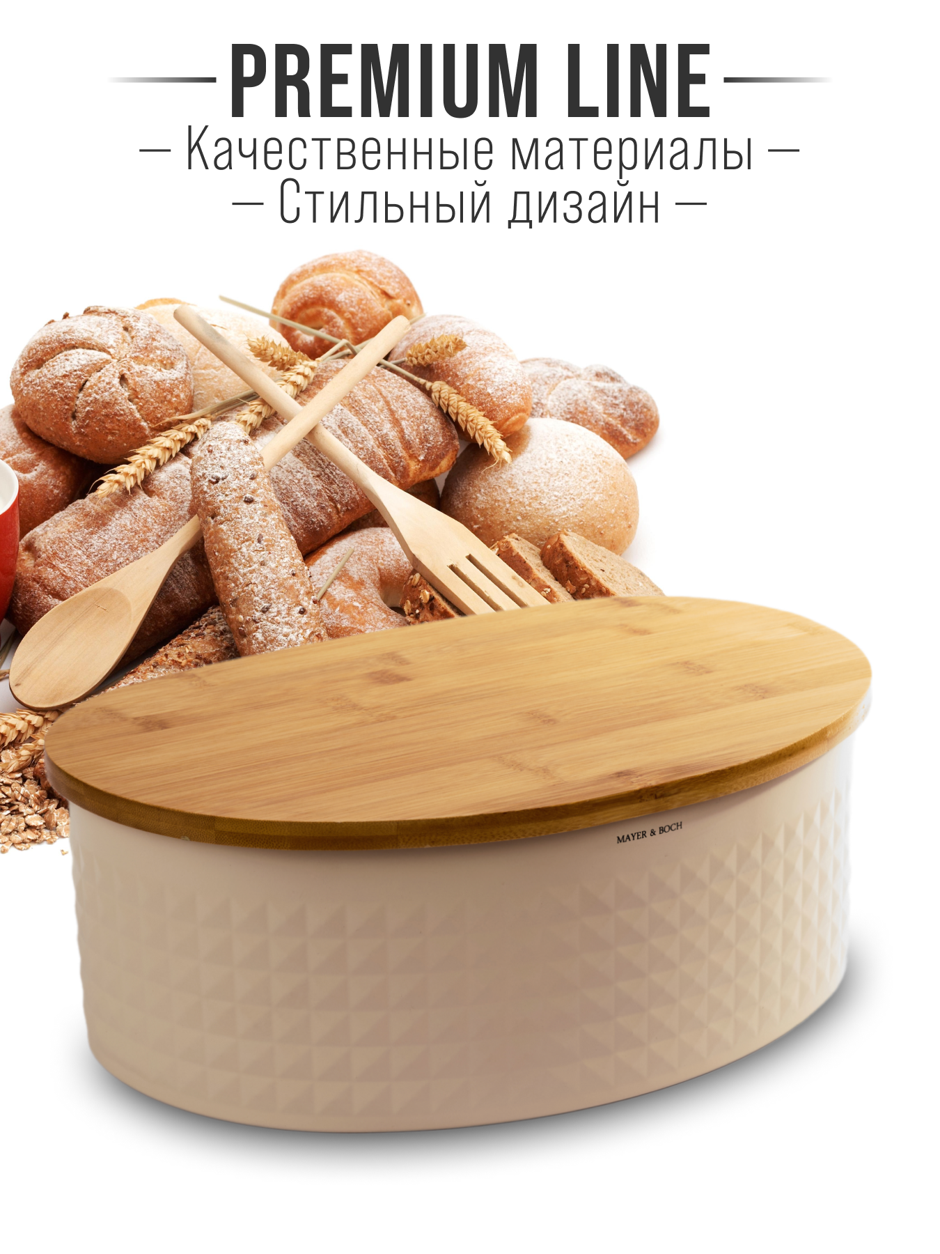 Хлебница MAYER&BOCH с крышкой из металла и бамбука, большая белая интересное: