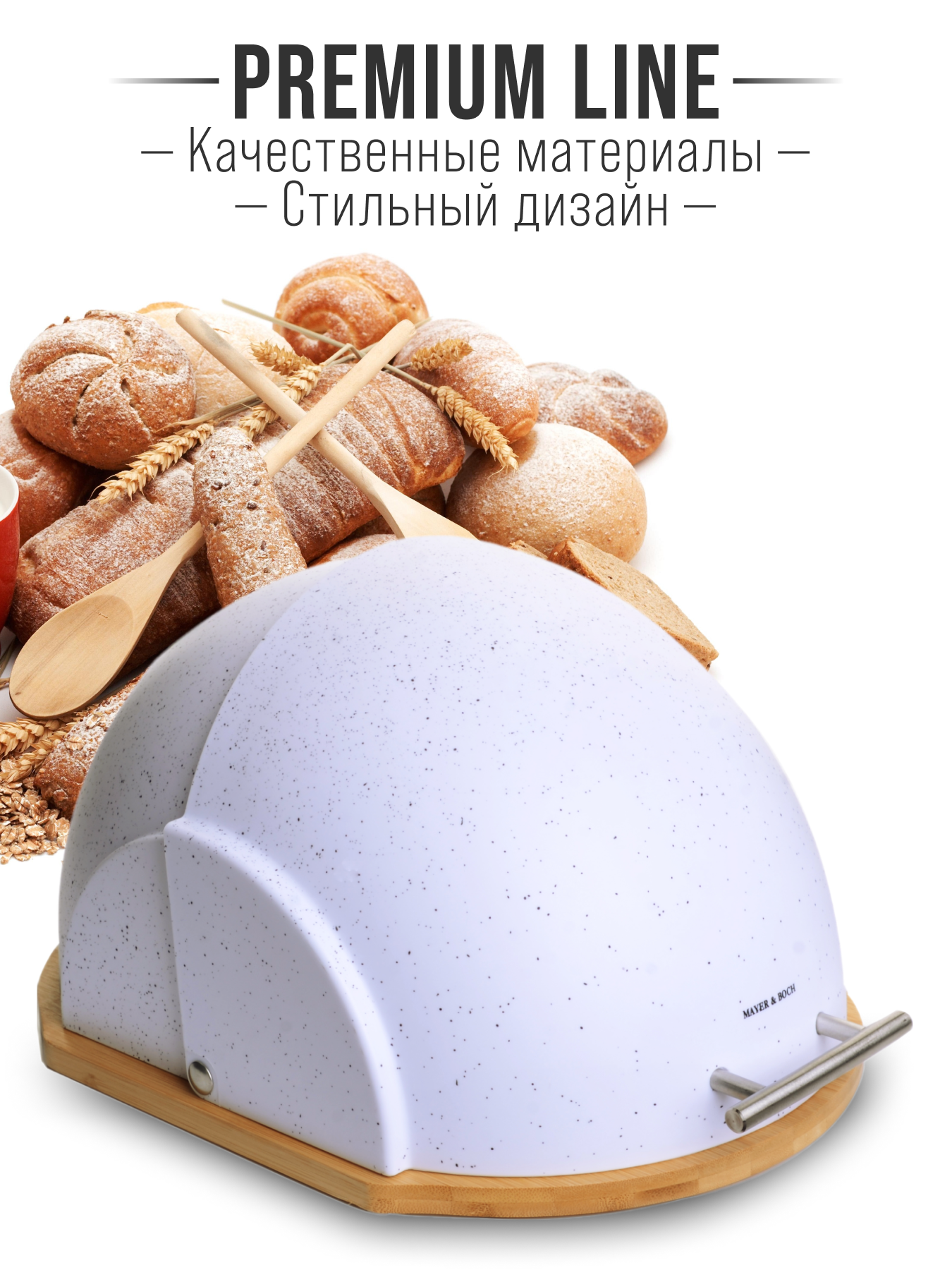 Хлебница MAYER&BOCH с крышкой из металла и бамбука, большая белая