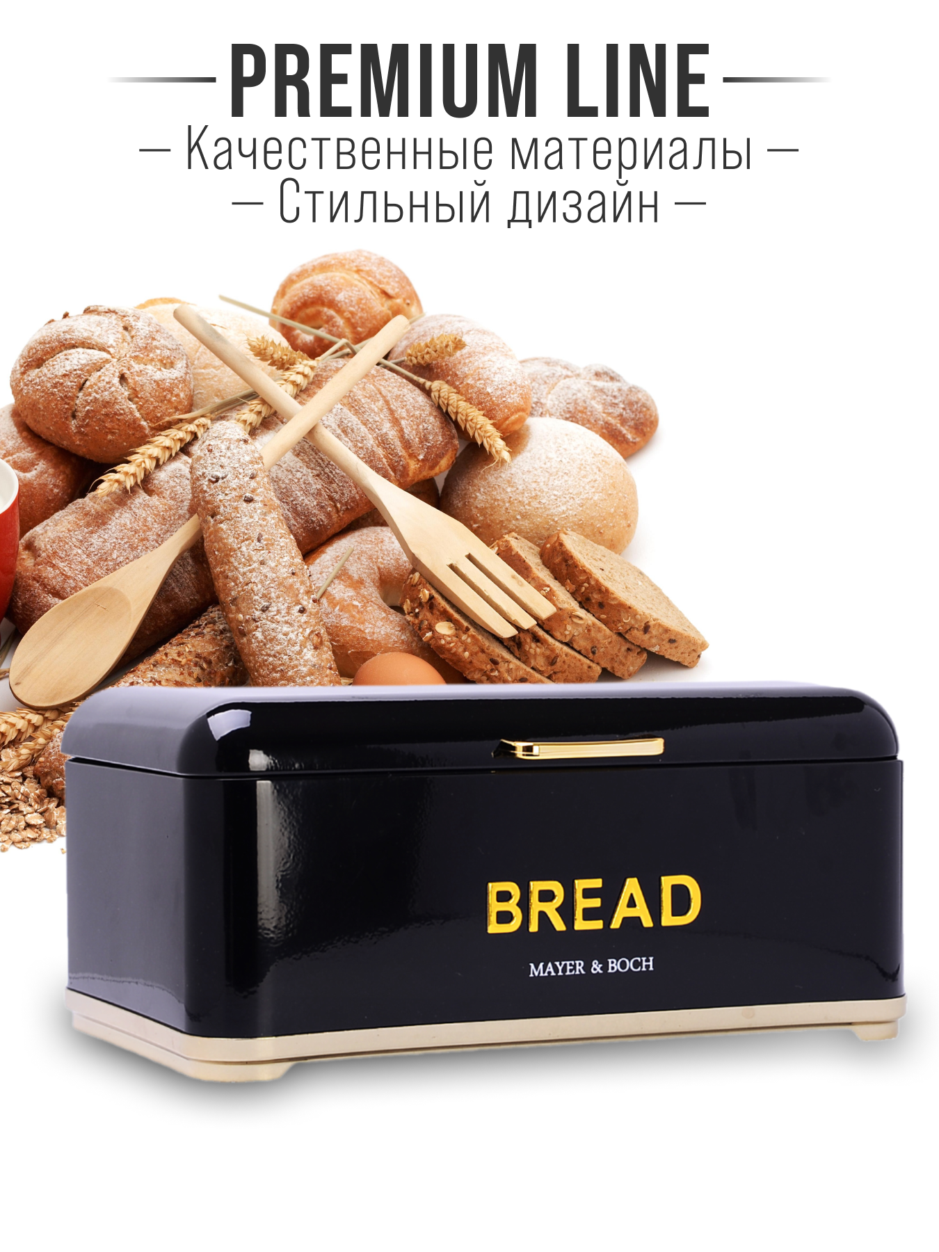 Хлебница Mayer&Boch, с откидной крышкой, металл, черная/золотая интересное: