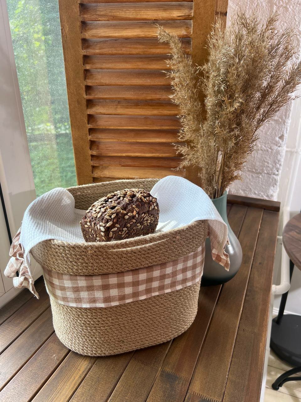Хлебница джутовая с крышкой овальная 2в1 интересное: