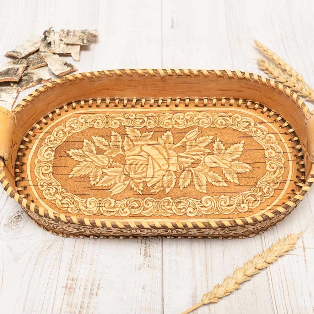 Тарелка - Сухарница Розы, овальная, береста, 30х15,5х5 см интересное: