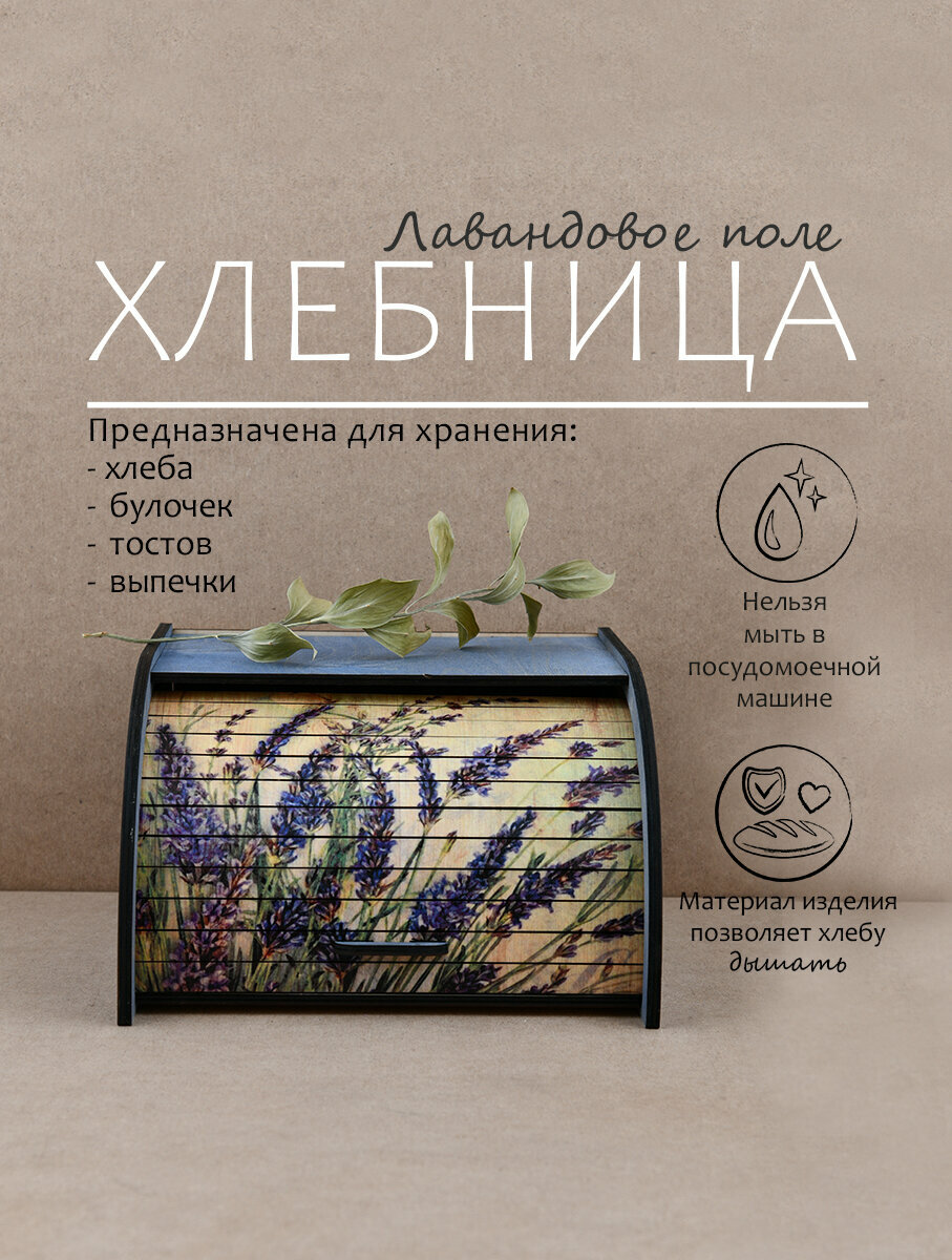 Хлебница деревянная с крышкой "Лавандовое поле", 29,5х29,5х18,5 см. интересное:
