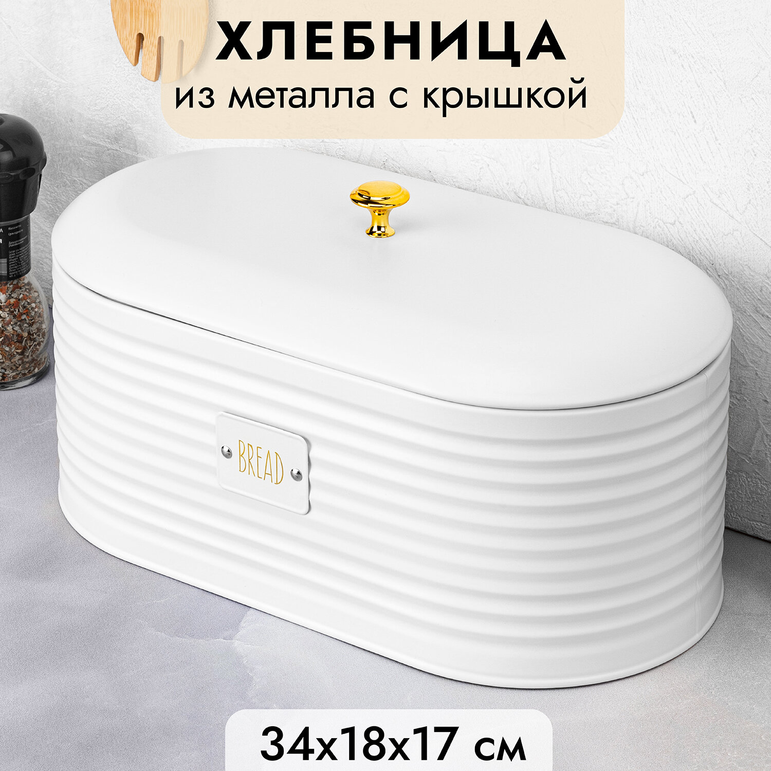 Купить Хлебница Elan Gallery "Белая" 34х18х17,2 см, металлическая, с крышкой