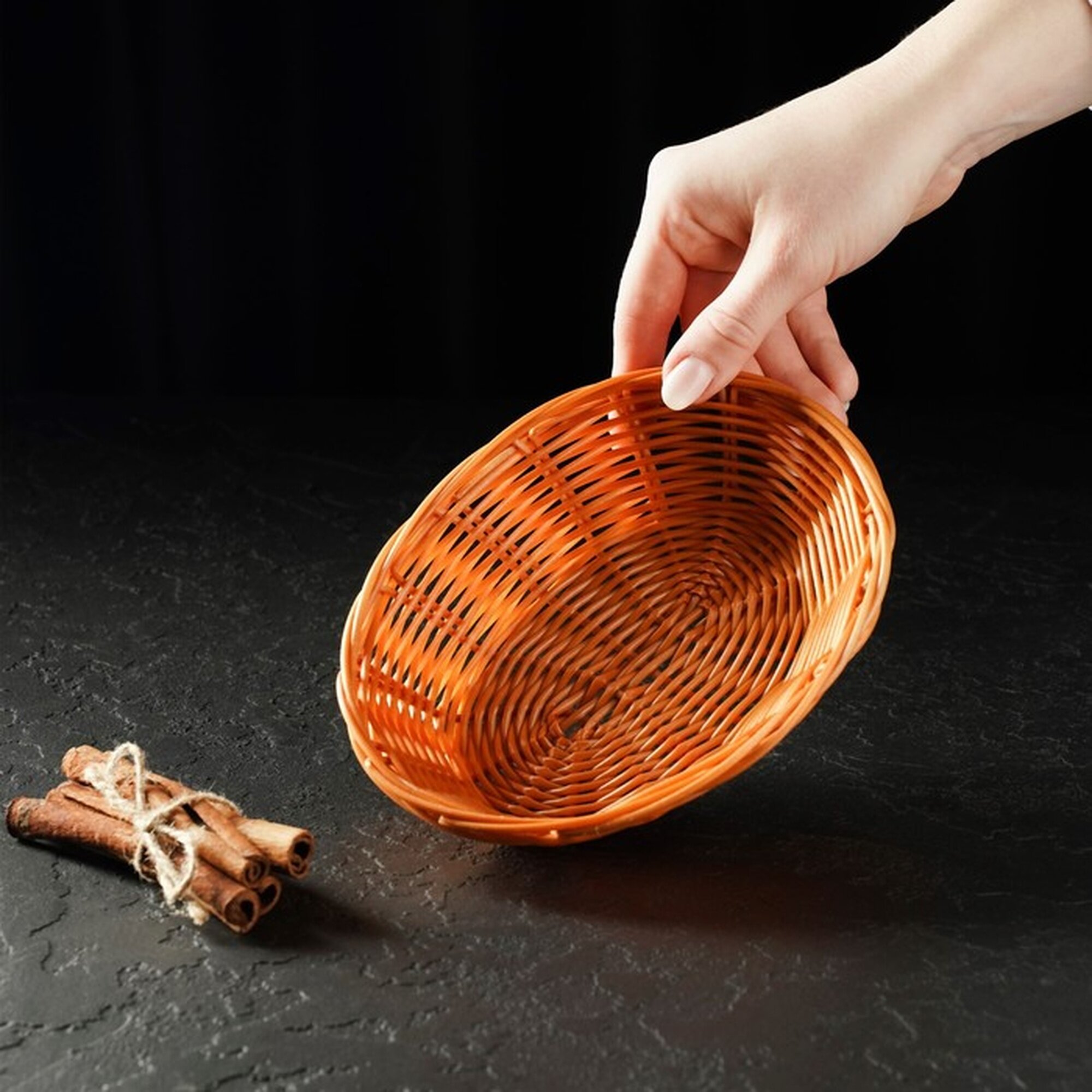 Корзинка для фруктов и хлеба Доляна «Капучино», 17×14×4 см, пластик, плетёная, коричневая интересное: