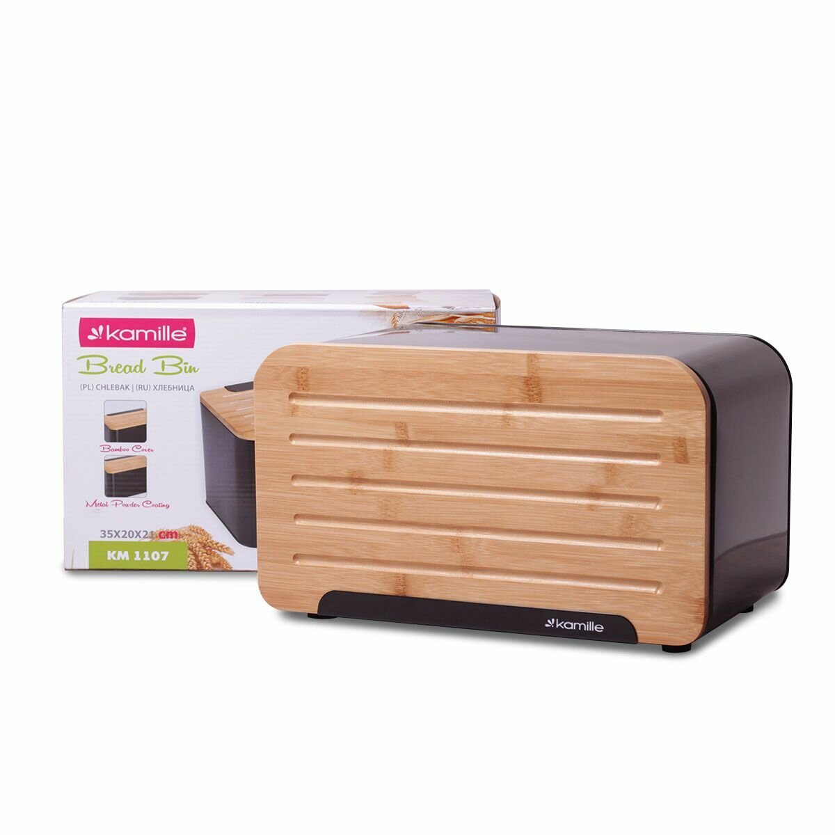 Купить Хлебница Kamille KM-1107 (бамбук, нержавеющая сталь) (1107 / черный)