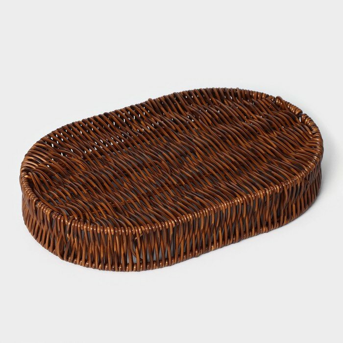 Купить Корзинка для фруктов и хлеба Доляна «Огайо», 31×21×5 см, пластик, плетёная, овальная, коричневая