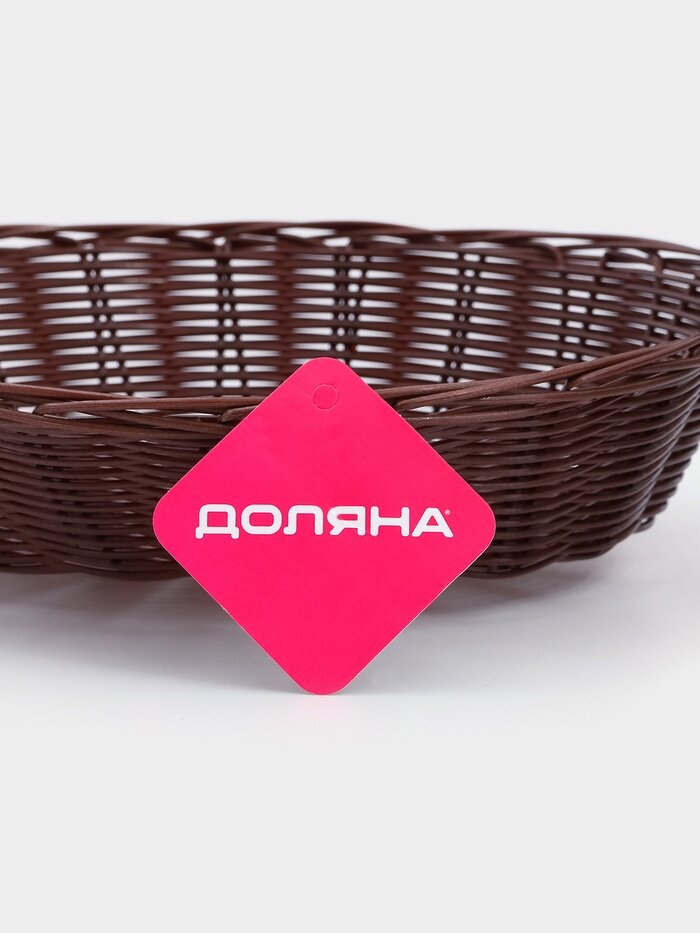 Корзинка для фруктов и хлеба Доляна «Огайо», 31×21×5 см, пластик, плетёная, овальная, коричневая