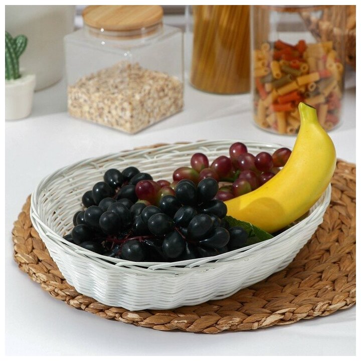 Корзинка для фруктов и хлеба Доляна «Огайо», 31×21×5 см, пластик, плетёная, овальная, коричневая