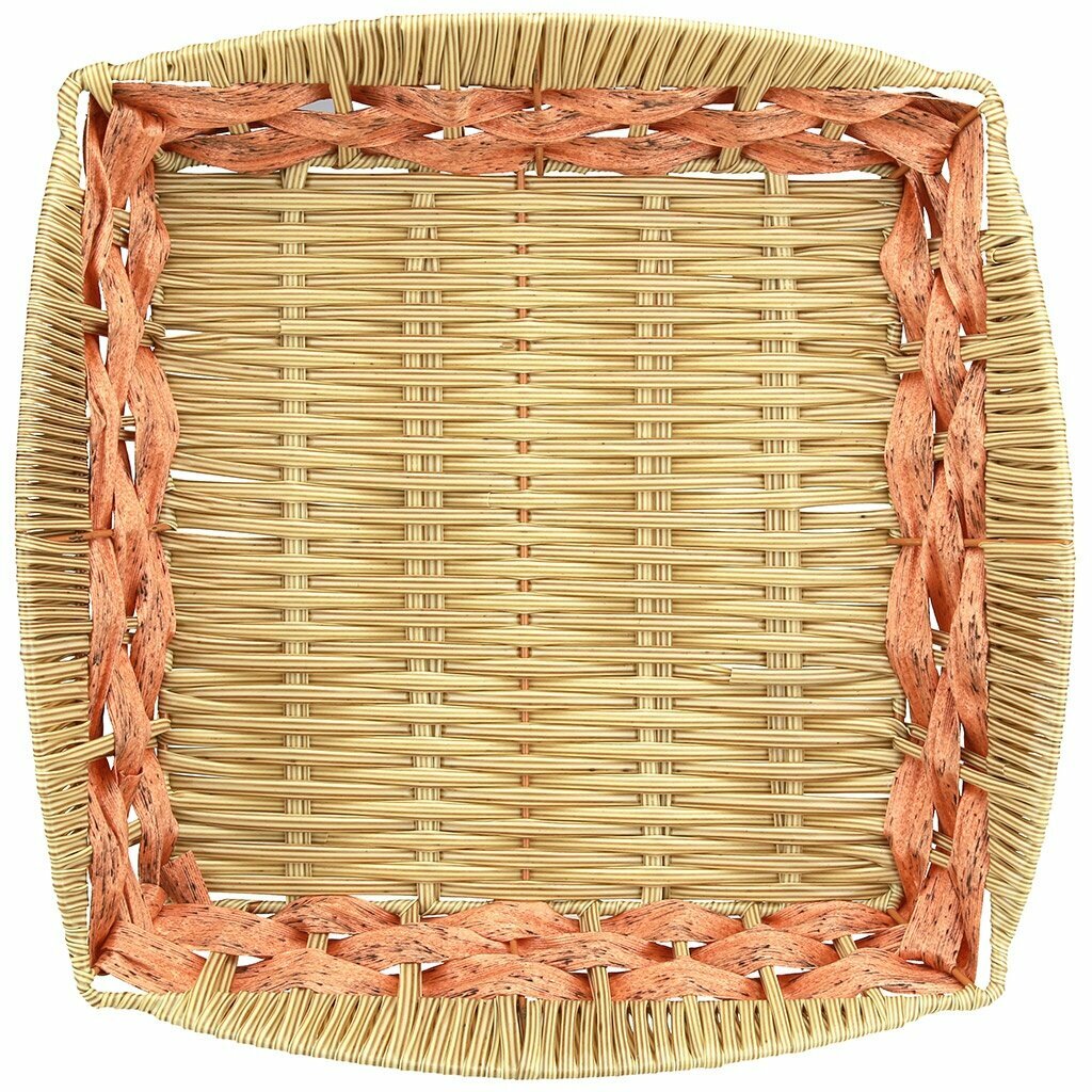 Корзина-сухарница КНР плетеная, 28,5х28,5 см, высота 7,5 см, полипропилен, карамельный, ажурный край, квадратная интересное: