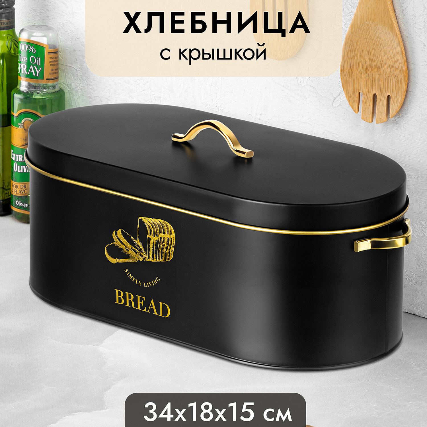 Хлебница 34,5х18х15 см Elan Gallery Черная с крышкой, овальная интересное: