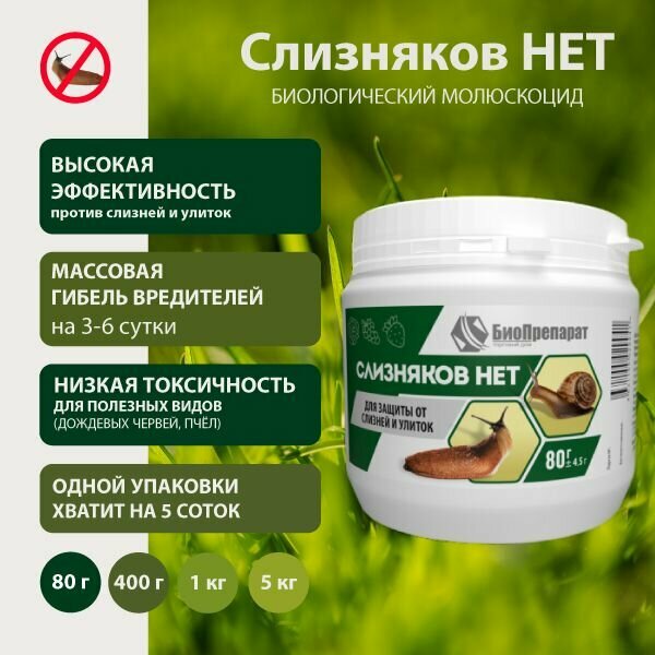 Ниже Вы можете прочитать отзывы на Слизняков нет, биологический комплекс-приманка для борьбы со слизнями и улитками 80гр., ознакомится с подробными характеристиками, посмотреть интересные обзоры и фотографии на Слизняков нет, биологический комплекс-приманка для борьбы со слизнями и улитками 80гр..