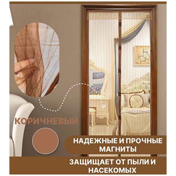 Москитная сетка на дверь на магнитах 150х210 см цвет коричневый интересное: