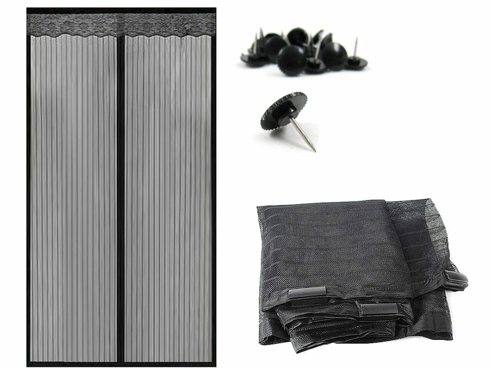 Сетка от комаров и насекомых на магнитах для двери, однотонная, 150 х 210 см. Цвет: черный.