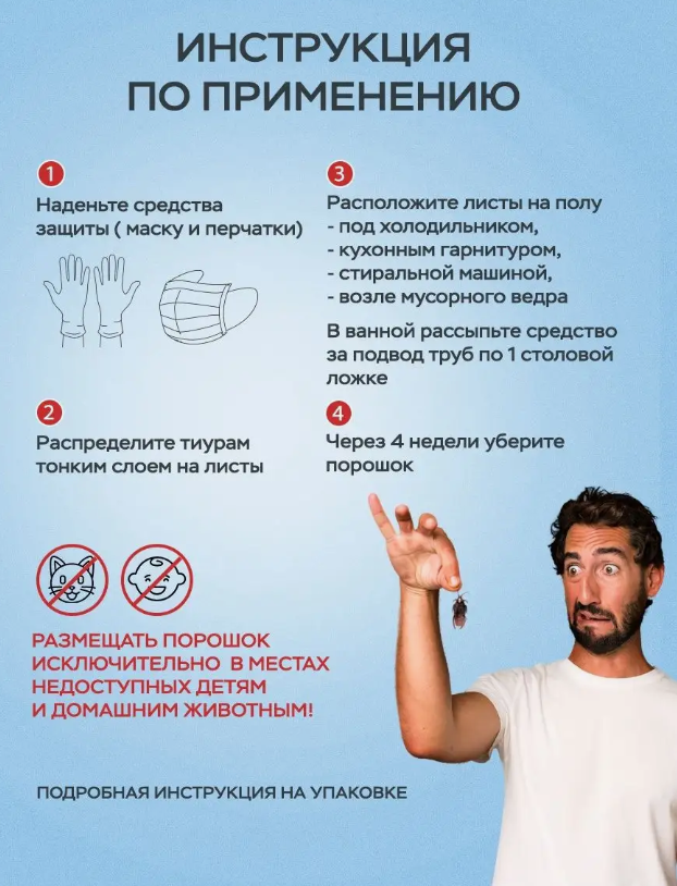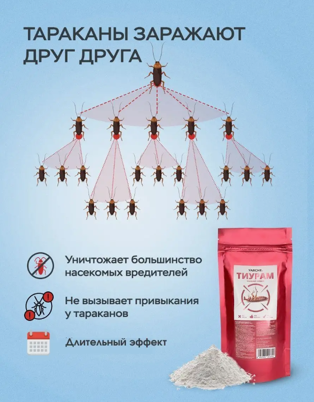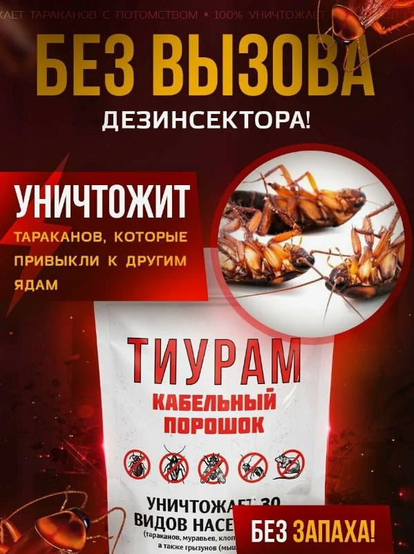 Средство от тараканов Тиурам/100% результат/ порошок от насекомых и грызунов, 100 гр интересное: