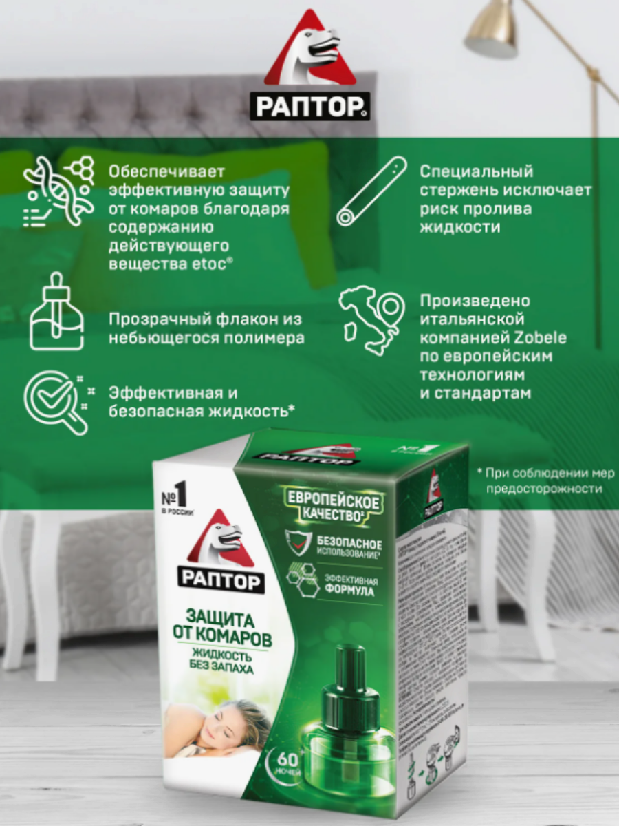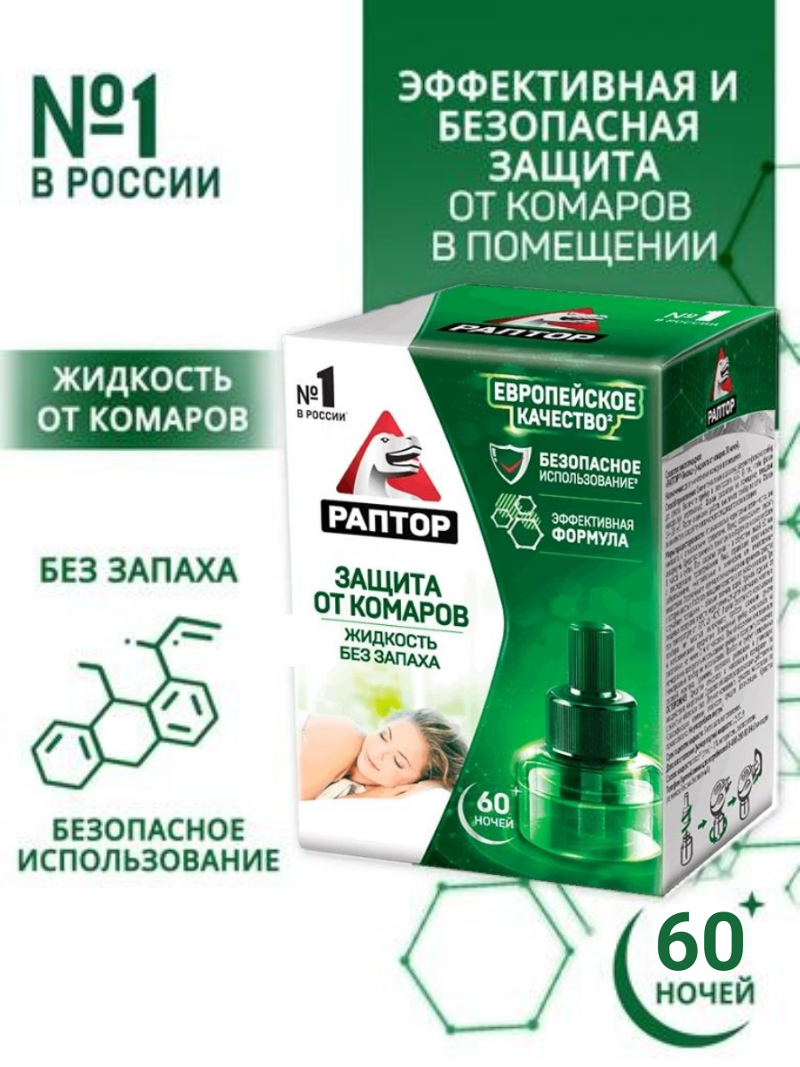 Жидкость Раптор, для фумигаторов, без запаха, от комаров, 35мл, 60ночей интересное: