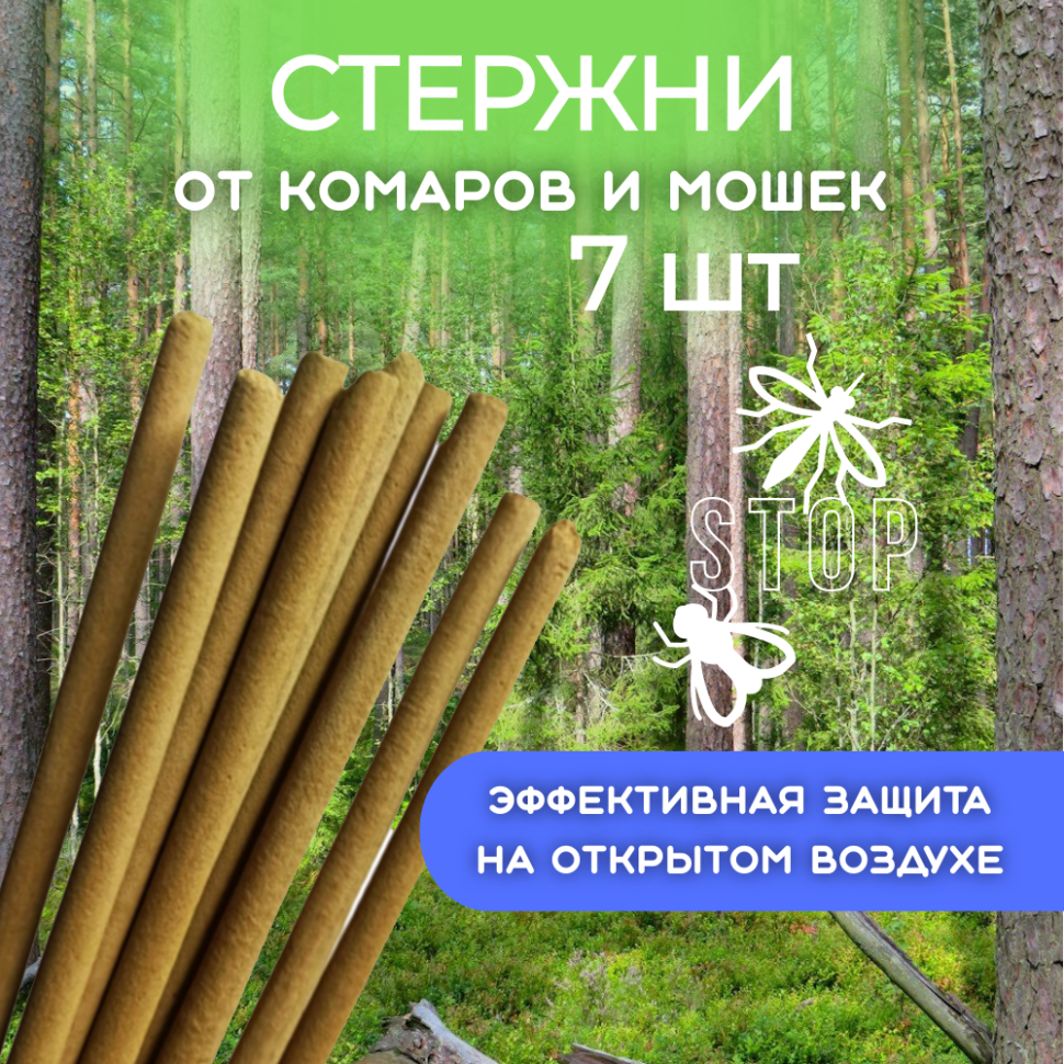 Стержни от комаров и мошек, репеллент Exmork, натуральный состав, 7 палочек по 58 см интересное: