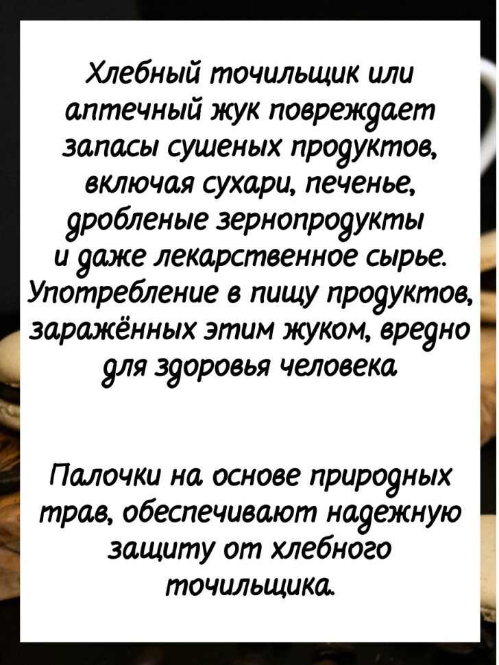 СохранитьСредство от хлебного точильщика 7 палочек по 28 см натуральный состав, безопасно для людей интересное: