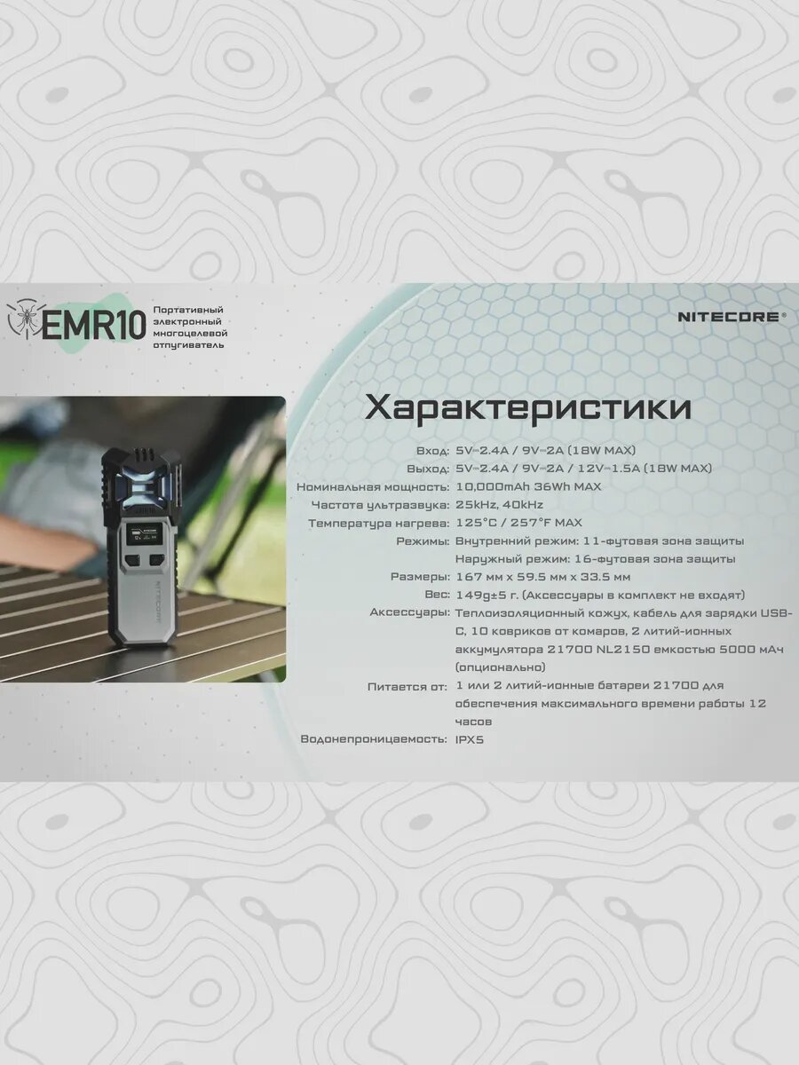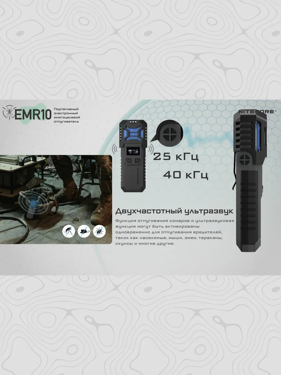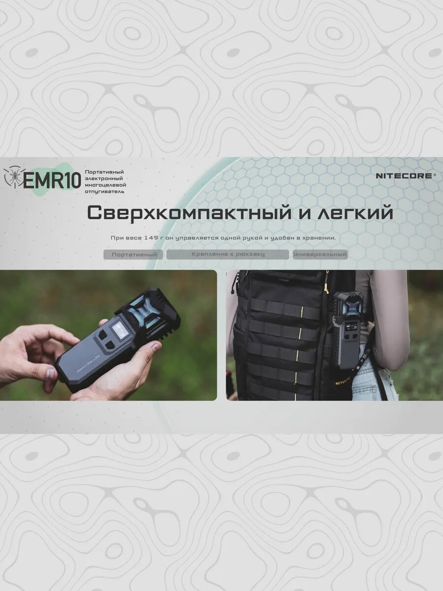 Портативный электронный многоцелевой отпугиватель комаров и мошек NITECORE EMR20 (EMR20)