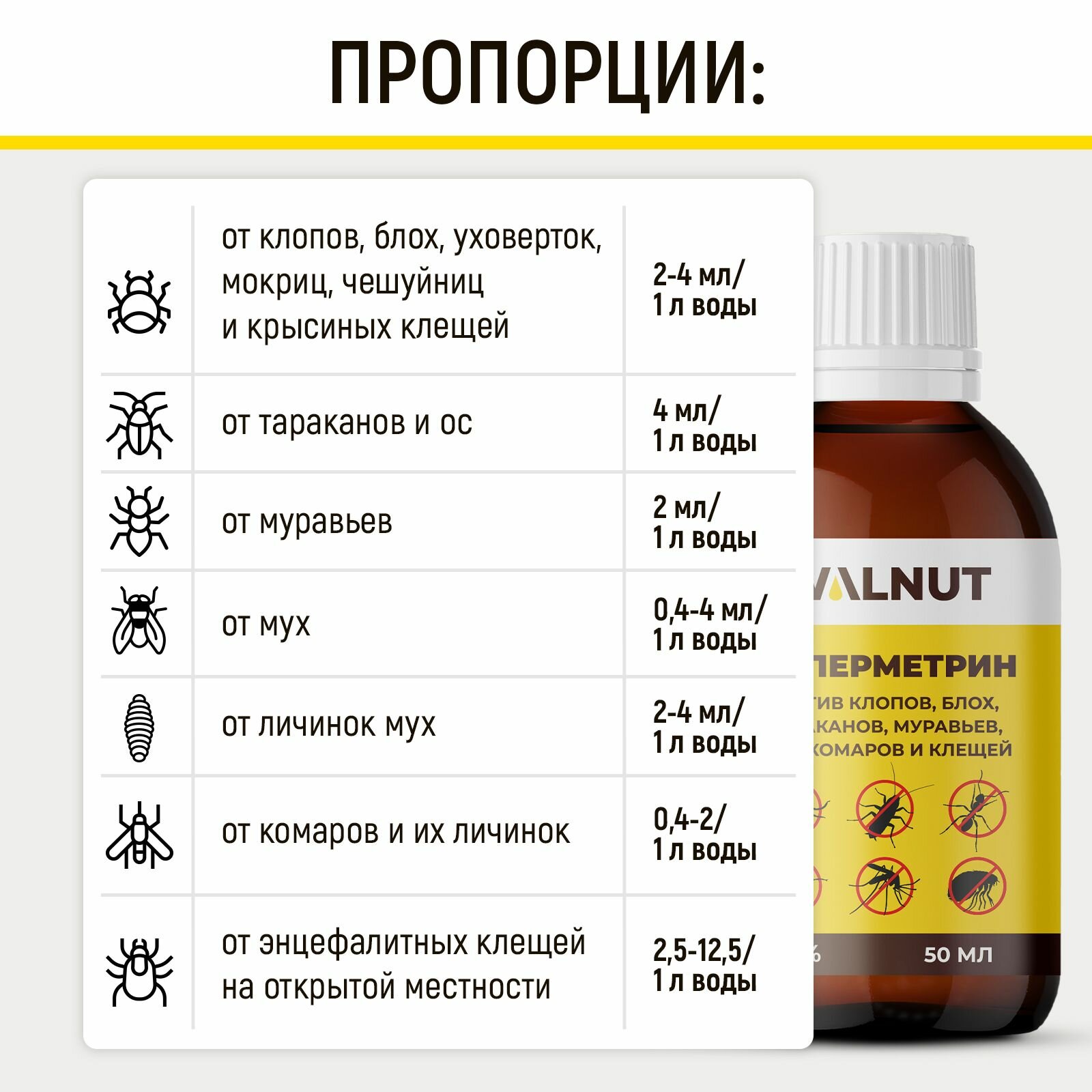 Циперметрин: мощное средство от тараканов, клопов и блох в помещении и на улице, WALNUT, 50 мл интересное: