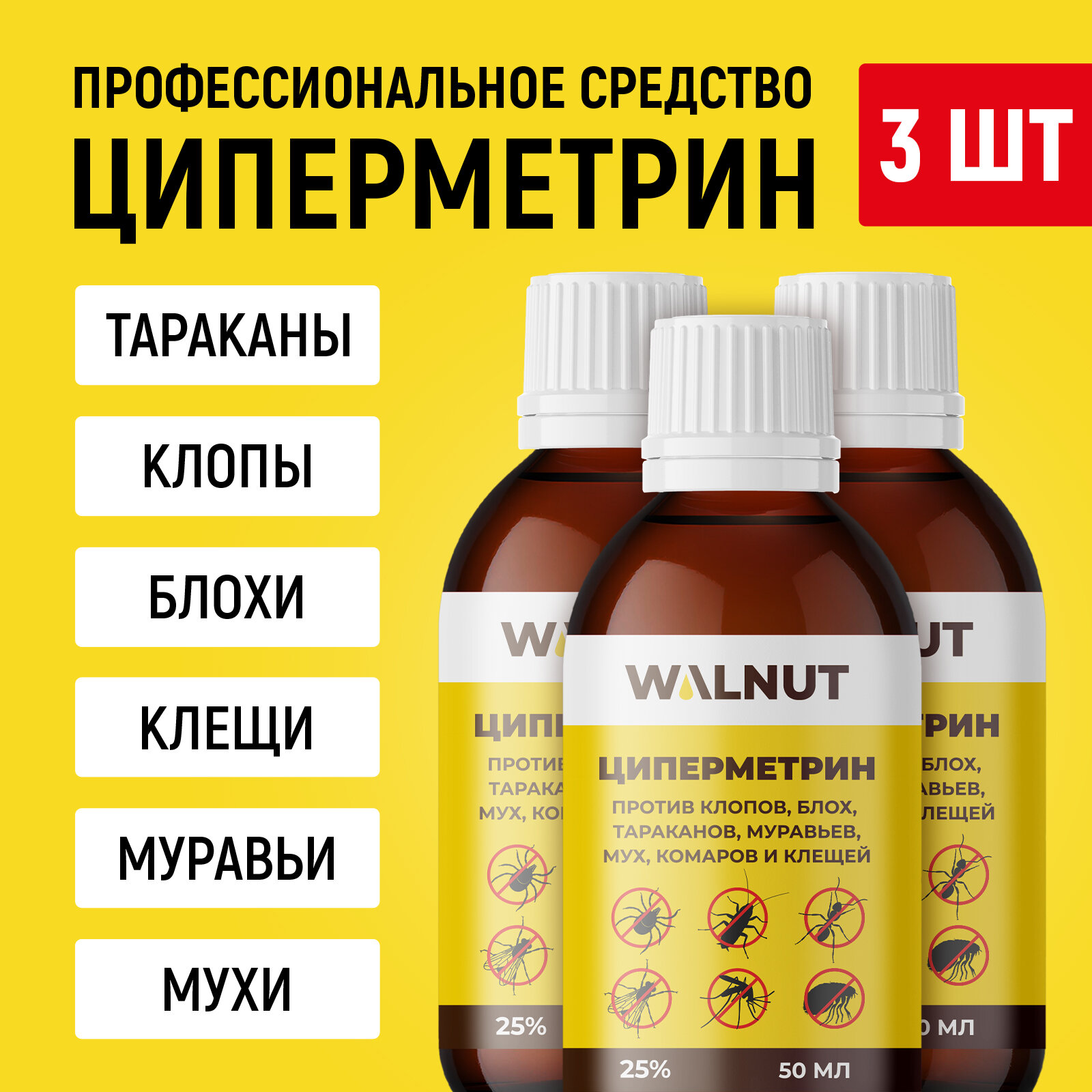 Циперметрин: мощное средство от тараканов, клопов и блох в помещении и на улице, WALNUT, 50 мл
