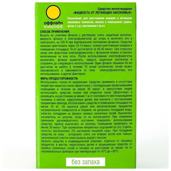 Жидкость Комарофф оффлайн длительно 70 ночей, без запаха, флакон 45 мл OF01070051 интересное: