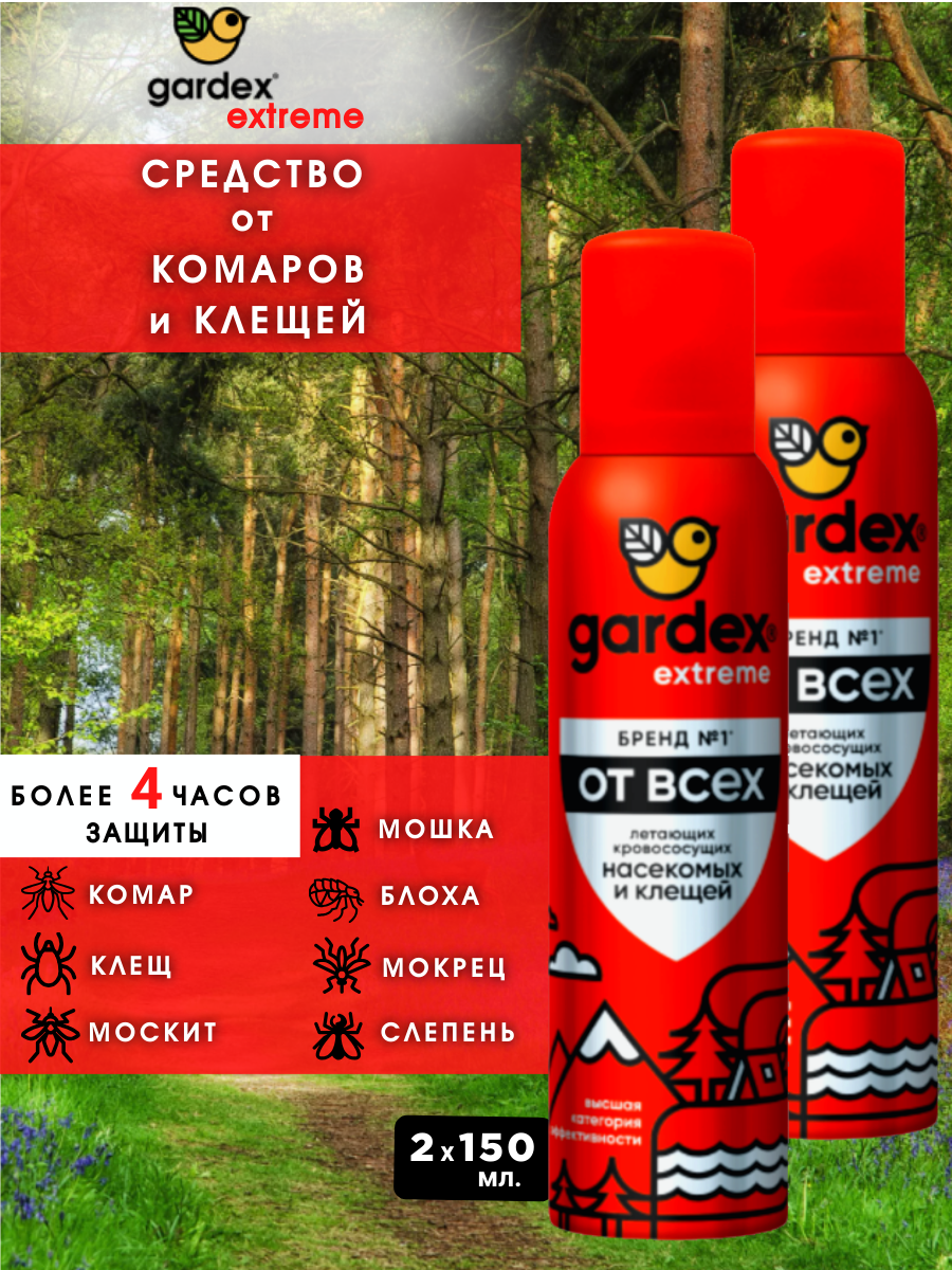 Средство от клещей, комаров, насекомых, Gardex Extreme, 150 мл. 2 штуки. интересное: