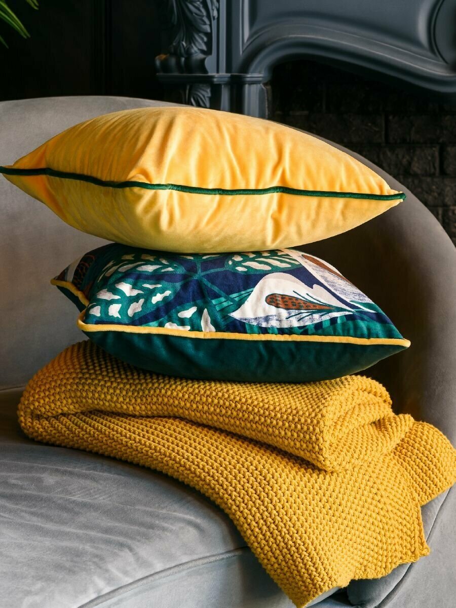 СохранитьПодушка декоративная со съемным чехлом на скрытой молнии желтая для интерьера 40х40 см, Moroshka Shangri La интересное: