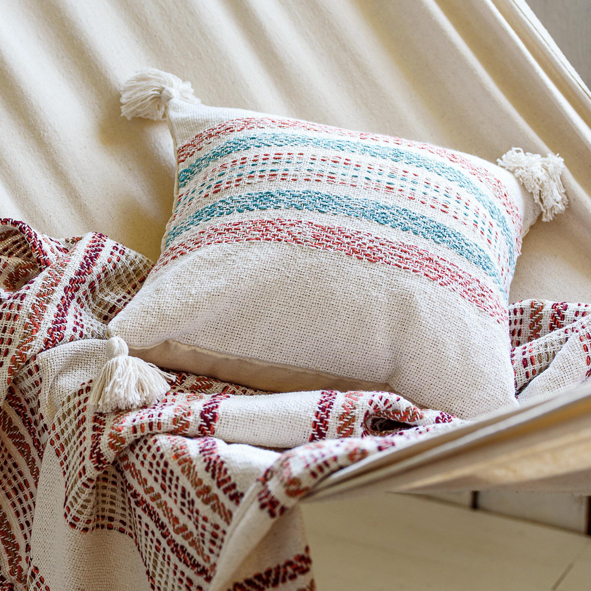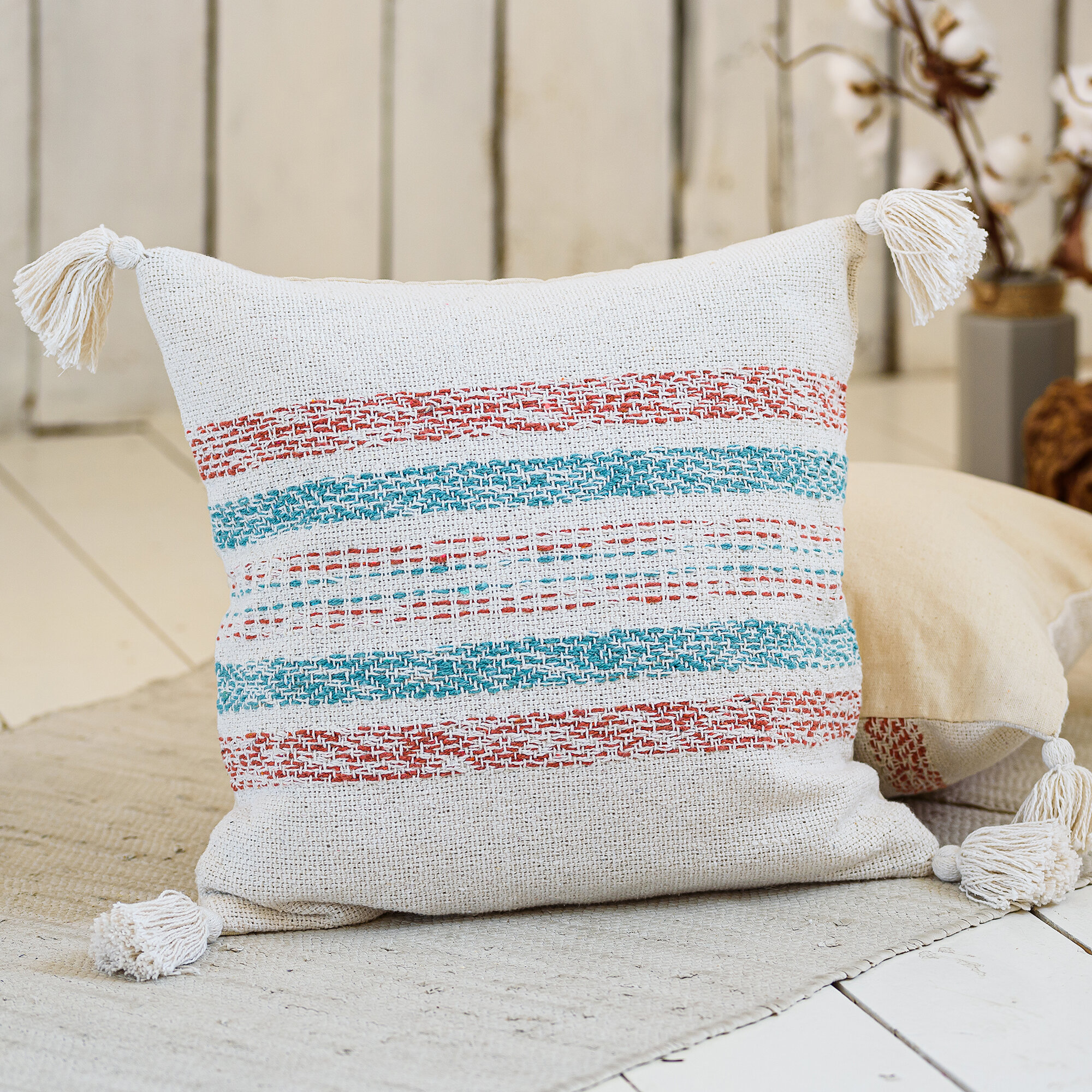 Купить Подушка декоративная со съемным чехлом на скрытой молнии бежевая для интерьера 40х40 см, Desert