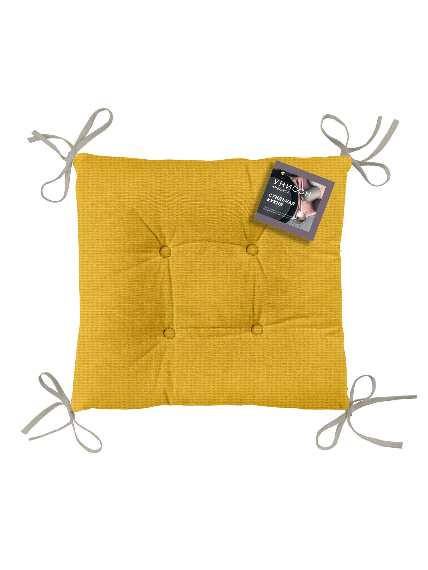 Купить Подушка на стул 40х40 квадратная с тафтингом Унисон рис 30004-16 Basic желтый