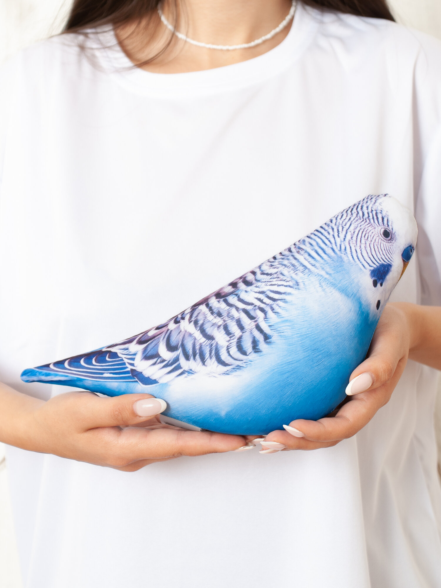 Купить Реалистичная антистресс мини игрушка-подушка птица волнистый Попугайчик (синий)