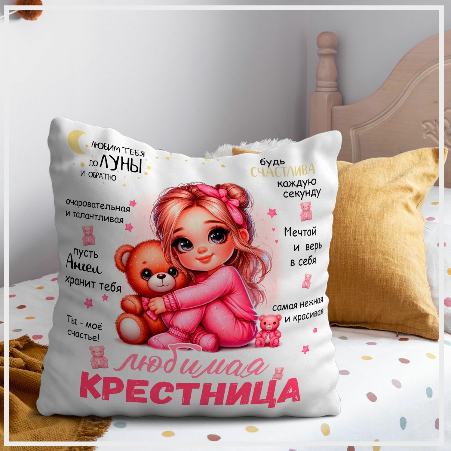 Купить Декоративная подушка топподарок "Для любимой крестницы", габардин, синтепух, 40х40 см
