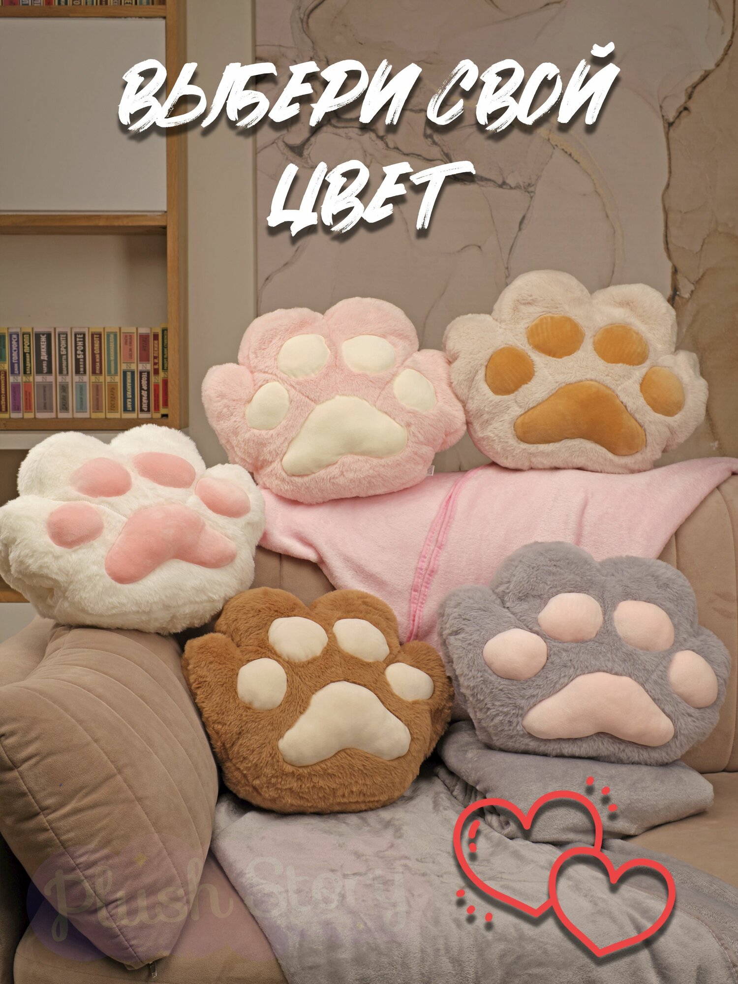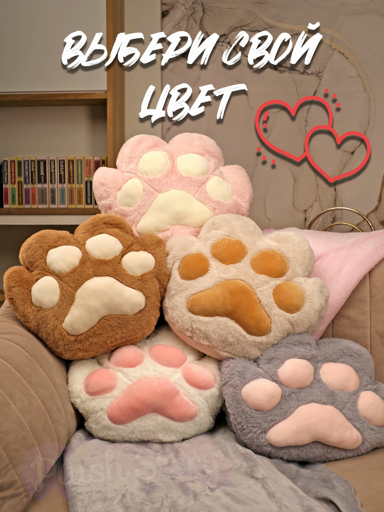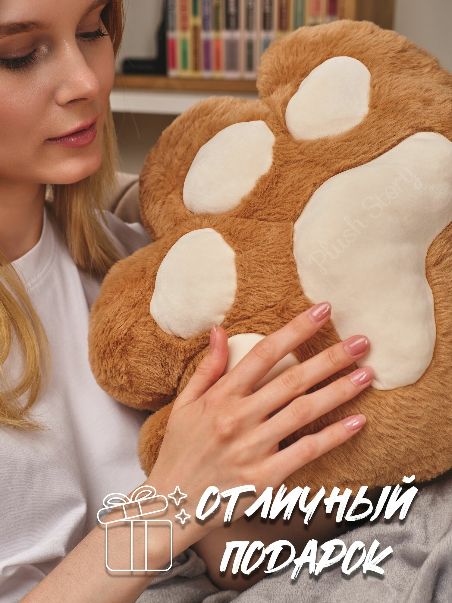 Подушка декоративная для сна Обнимашка Сидушка на стул "Кошачья лапка" с пледом коричневая интересное: