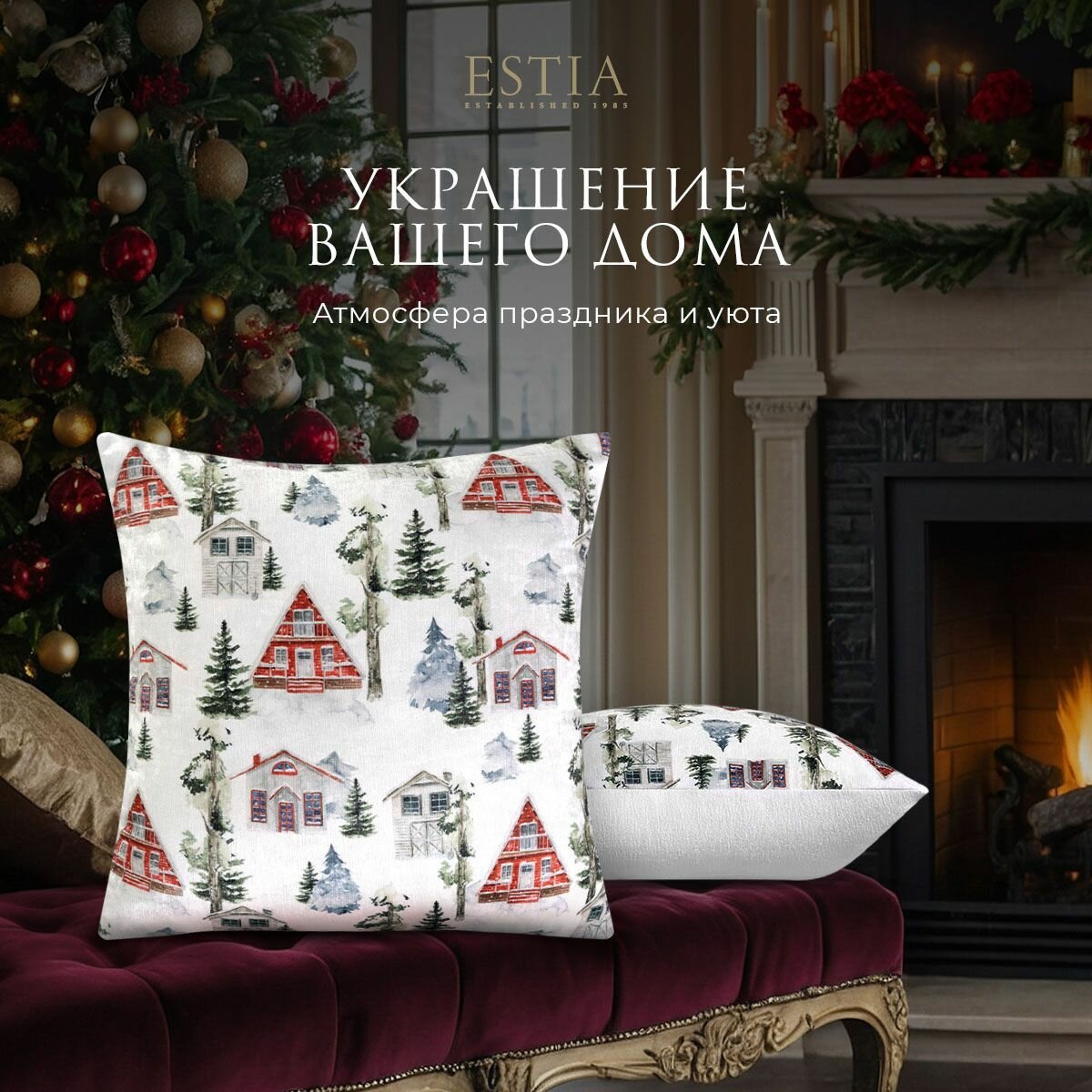 Купить ESTIA Подушка декоративная в подарок "Эрибе" с молнией "Зима в городе", 45x45