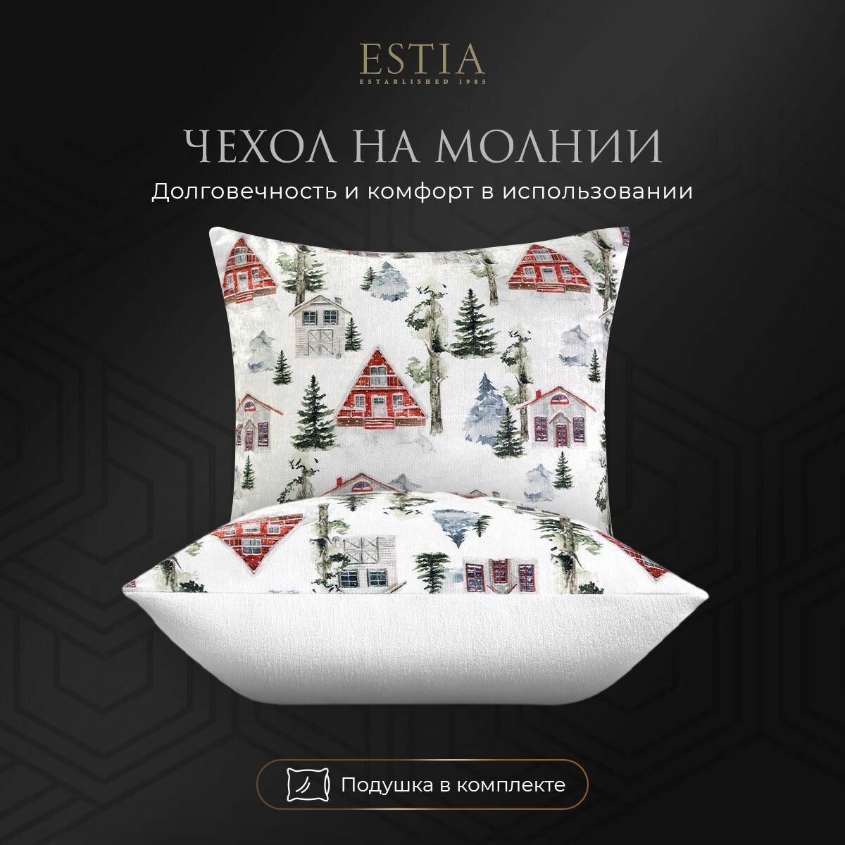 ESTIA Подушка декоративная в подарок "Эрибе" с молнией "Зима в городе", 45x45 интересное: