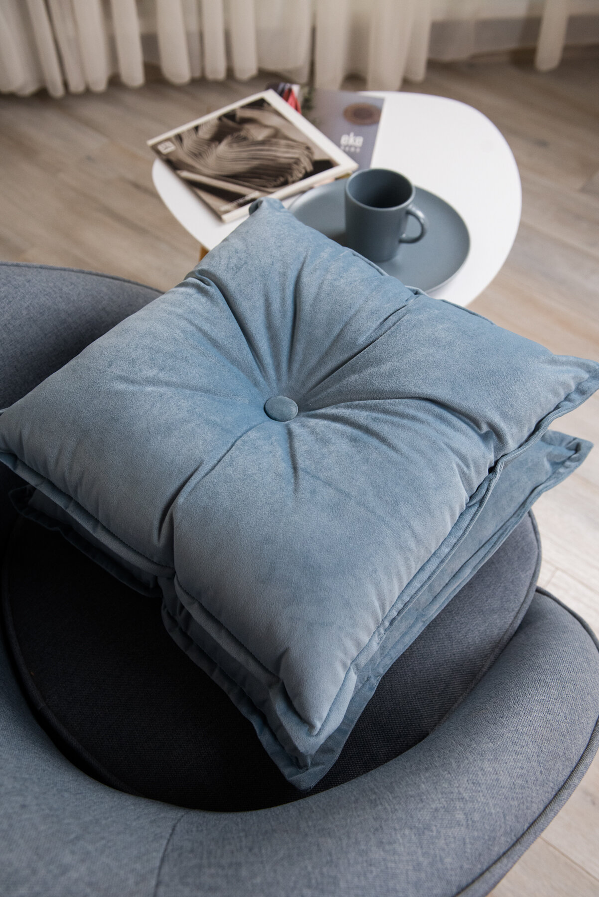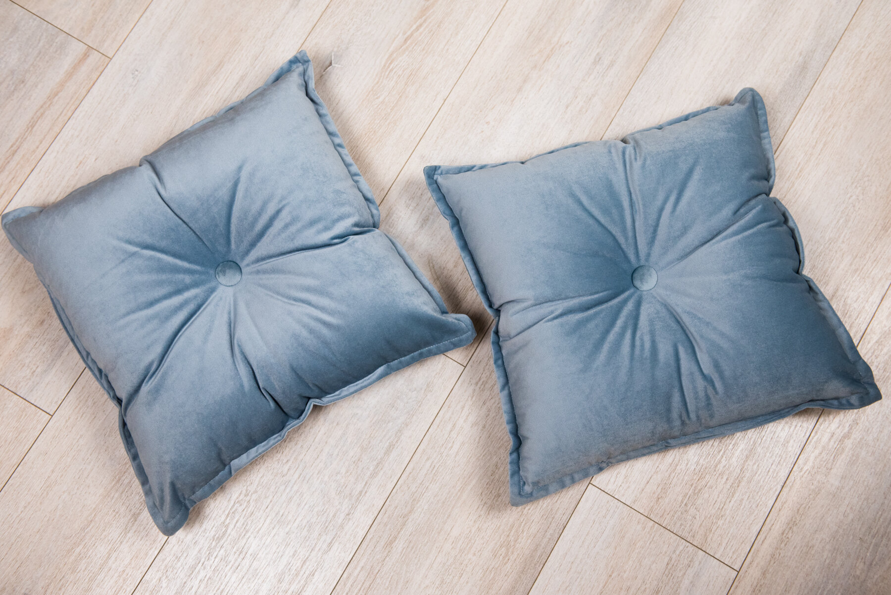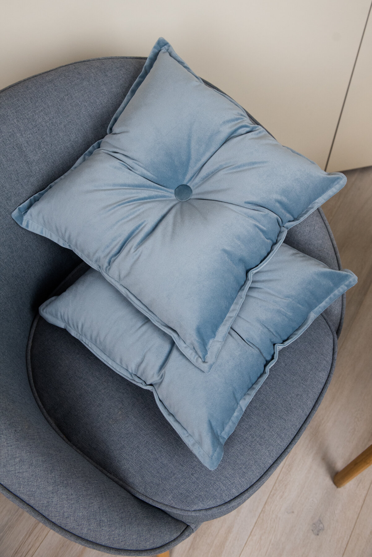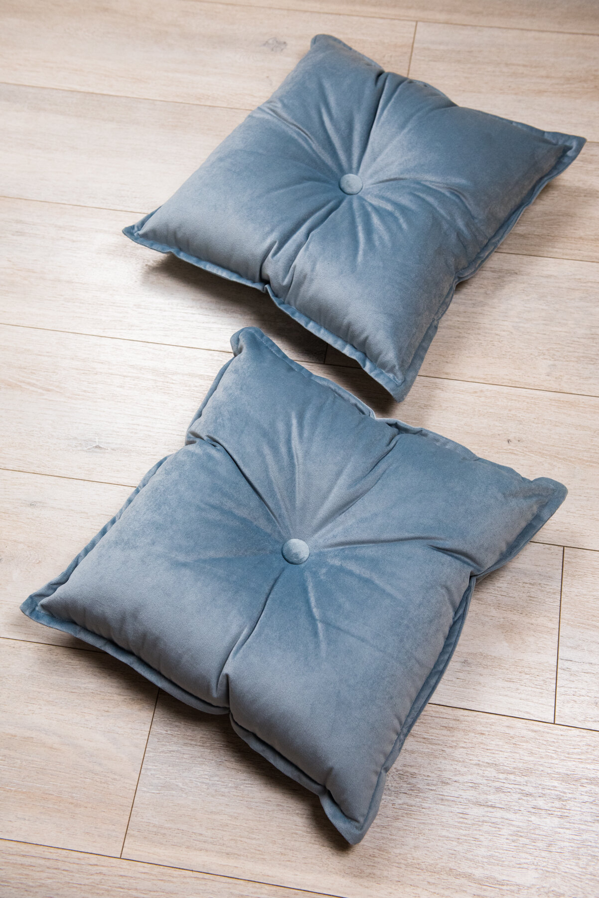 Купить Комплект подушек 45х45 бархат с пуговицей с отстрочкой, серо-голубой, 2 шт